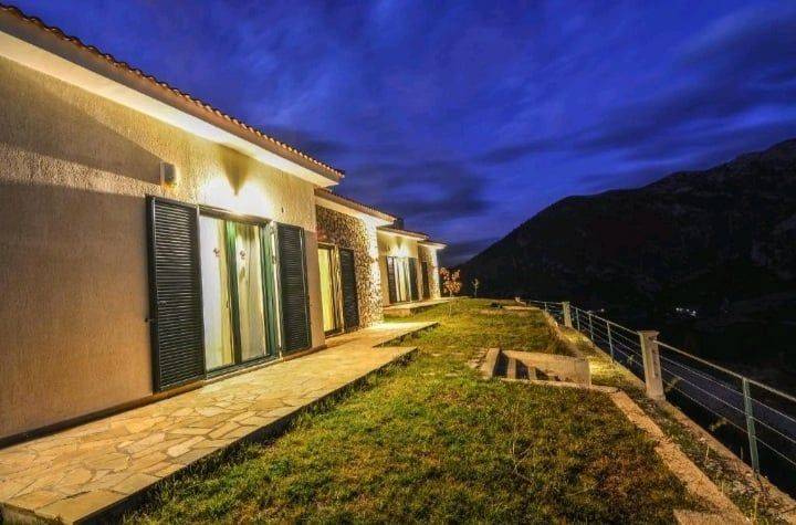 Πωλείται συγκρότημα, αποτελούμενο από 8 ανεξάρτητες κατοικίες, ένα καφέ-μπαρ και πισίνα 12χ4,5μ. (έτος κατασκευής 2017). Το συνολικό εμβαδόν των κτισμάτων είναι 405 τ.μ. με επιπλέον 10 τ.μ. σοφίτα σε κάθε κατοικία. Επίσης διαθέτει δυο υπόγεια συνολικού εμβαδού 93τ.μ. Βρίσκεται σε κτήμα 9,5 στρεμμάτων, εν μέρη εντός και εν μέρη εκτός σχεδίου, επί του κεντρικού δρόμου Ζαρούχλας- Χιονοδρομικού Καλαβρύτων, από το οποίο απέχει περίπου 12χλμ. με απεριόριστη θέα και σε υψόμετρο 1100 μέτρων. Έχει υπόλοιπο δόμησης 295τμ. Είναι δομημένο με σύγχρονες προδιαγραφές, με εμφανείς κεραμοσκεπές και επένδυση πέτρας για να εναρμονίζεται με το τοπικό περιβάλλον. Πλήρως εξοπλισμένο και επιπλωμένο, με κουφώματα αλουμινίου θερμοδιακοπτόμενα , ενεργειακά τζάμια και σίτες και μονώσεις. Κάθε κατοικία διαθέτει ατομική ατομική θέρμανση αερίου, τζάκι, πολυτελές χαμάμ ή σάουνα από ξύλο κέδρου, κουζίνα και μεγάλες ντουλάπες. Το καφέ έχει πλήρη εξοπλισμό λειτουργίας και 2 WC. Υπάρχει μεγάλος περιβάλλον χώρος για αναψυχή, parking κλπ με 2 αποθήκες.