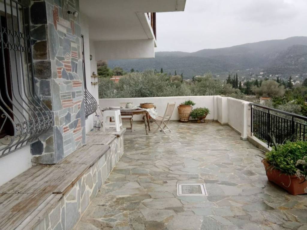 A maisonette of 120 sq.m. is for rent at the foot of Geraneia in Schino, Corinthia. The area is 10 km away from Alepochori and 20 km from Loutraki. It includes 2 bedrooms, 2 bathrooms, 1 large living room + kitchen with fireplace and large terraces. All electrical appliances are included. There is an additional ground floor warehouse and parking space. Air-condition included. It is 250m away. from the sea, 150m. from the oven and 500m. from a supermarket. It is of excellent construction in terms of building materials. It is located on a plot of 4 acres with fruit and olive trees and has a borehole with a pomona. There is ANOTHER ONE IDENTICAL PROPERTY on the plot, but not permanently occupied. Rental by season is possible upon request.