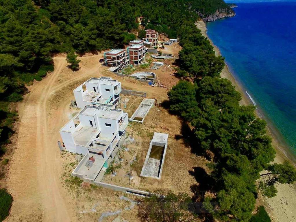 Χαλκιδική, περιοχή Παλιούρι Κάνιστρο, πάνω στο κύμα, 5 βίλες 300τμ έκαστη, τελειωμένες και σε φάση διαμόρφωσης. Η κάθε βίλα βρίσκεται σε οικόπεδο 2 στρ με μοναδική ιδιωτική παραλία. Τιμή Πώλησης: 1.500.000€ έκαστη Κωδ.: 13339