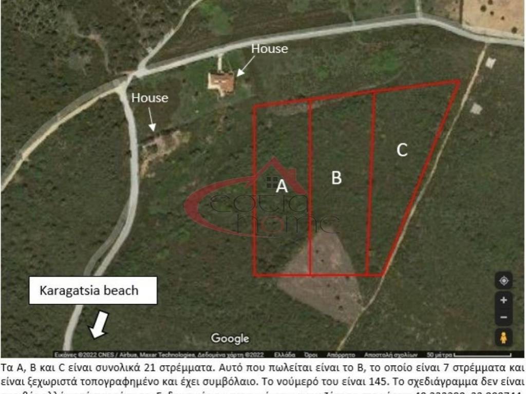 Αυτό που πωλείται είναι το B, το οποίο είναι 7 στρέμματα και είναι ξεχωριστά τοπογραφημένο και έχει συμβόλαιο.