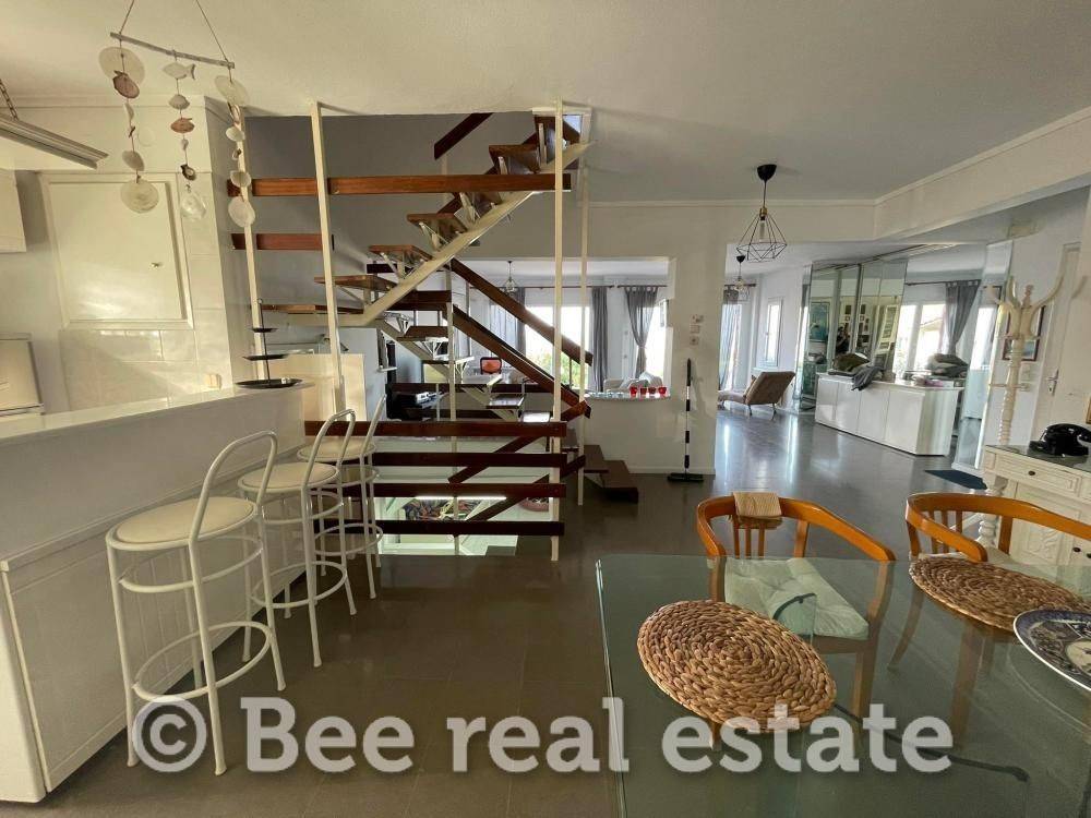 For sale: an impressive three-level maisonette of 200 sq.m., located just a breath away from the sea. This property perfectly combines comfort and aesthetics, making it ideal both as a summer retreat and as a permanent residence. It is situated within a beautifully designed, idyllic complex that reflects the charm and character of Greek architecture and culture, creating an atmosphere reminiscent of a cinematic setting. Its prime location is one of its greatest advantages, as the beach can be reached in just a few steps. The earthy tones of the residences, harmoniously blended with the lush greenery and the endless blue of the sky and sea, create a stunning landscape that offers daily moments of relaxation and tranquility. ### Property Features **First Level:** Living room and storage area. **Second Level:** Paved courtyard with BBQ area, spacious living room with fireplace, kitchen, and one WC. **Third Level:** Three large bedrooms, two of which feature built-in wardrobes, a beautifully designed bathroom, and two balconies. The property is equipped with autonomous oil heating and air conditioning units on every level, ensuring comfort throughout the year. It also includes a private parking space. The price is fixed and non-negotiable.