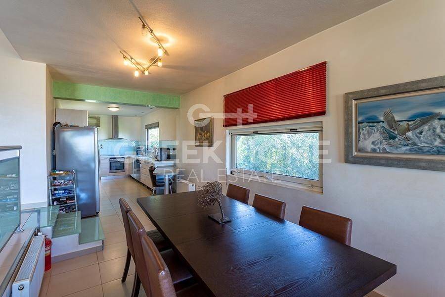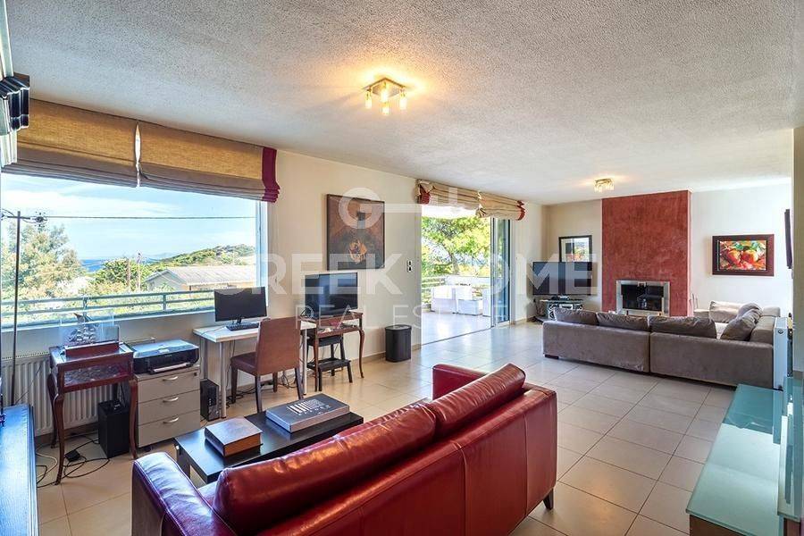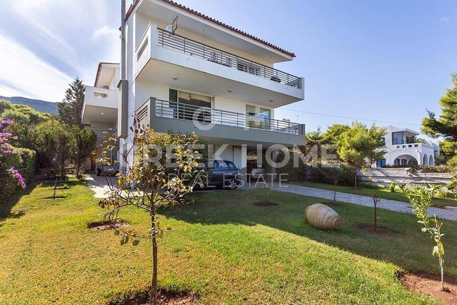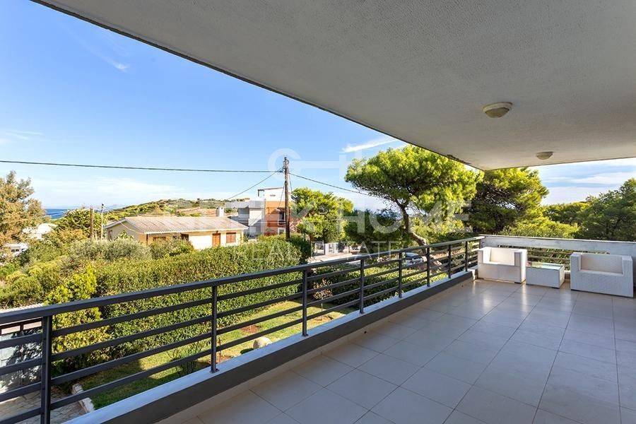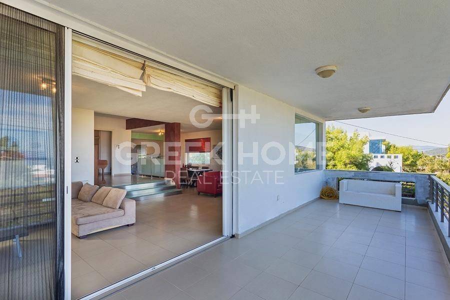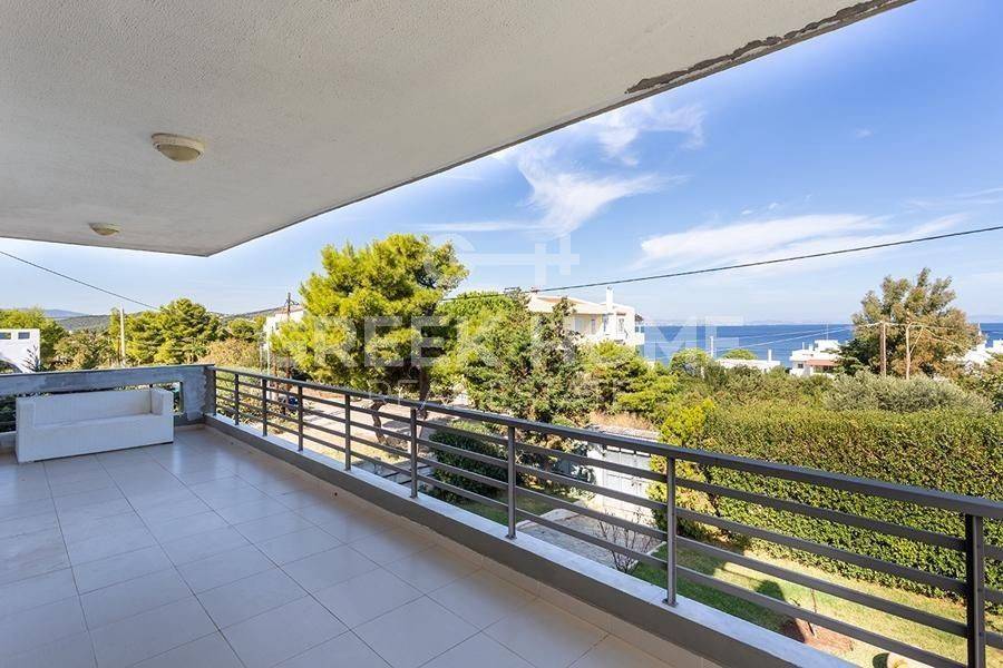 Markopoulo Mesogeas, Hamolia - Floor Apartment 164sqm bedrooms 3, 1st, renovated, year built 1981, energy class A, living room, kitchen, bathroom, wc, heating type: central (oil), parking, quiet, dual aspect apartment, luminous, sea view, frontage, storage space, fireplace, balconies, large balconies, tents, garden, aluminum frames, double glazed windows, door screen, wood & tile floors, secure door, luxurious, swimming pool, internet, pets allowed, sea front, close to sea (up to 100m).