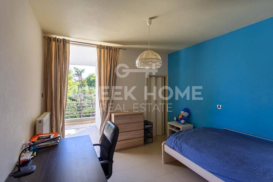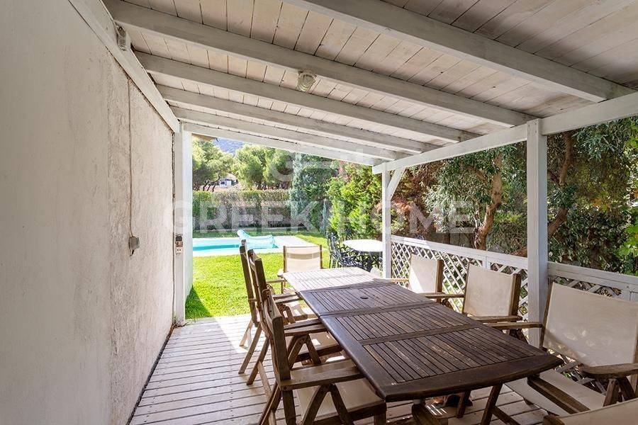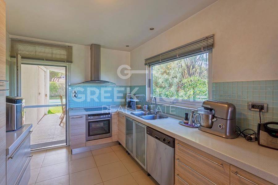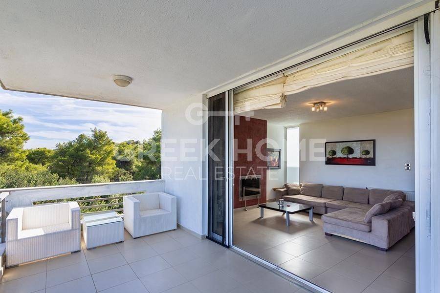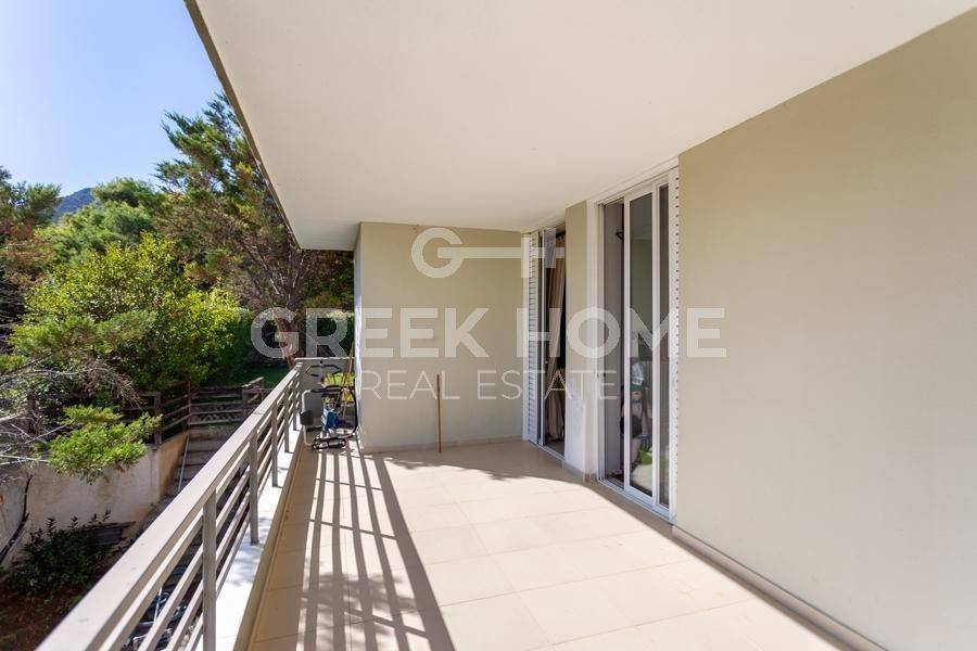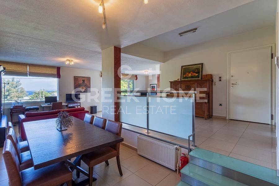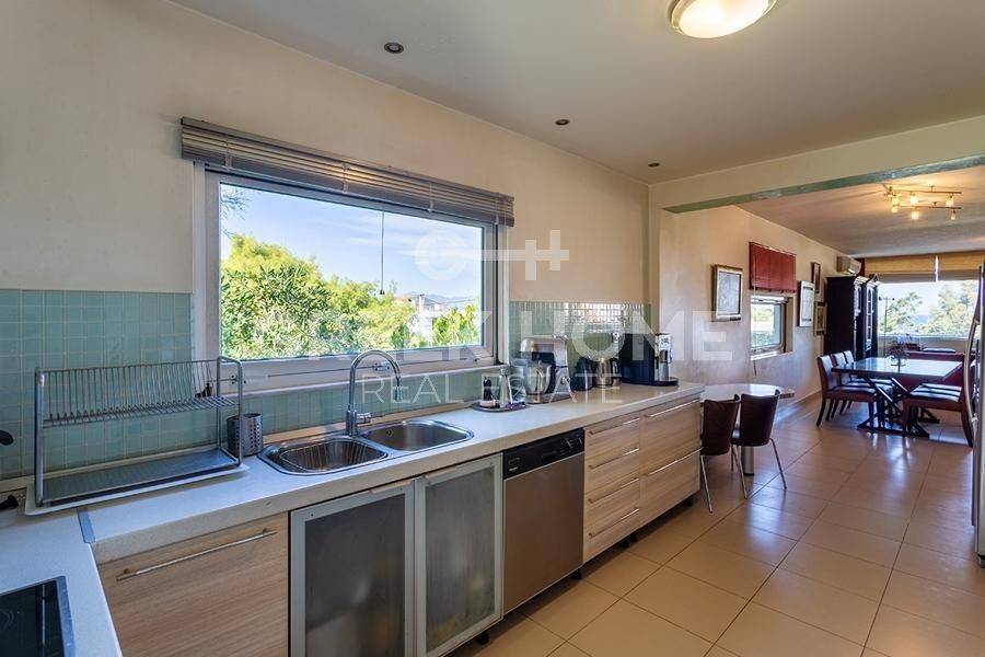 Markopoulo Mesogeas, Hamolia - Floor Apartment 164sqm bedrooms 3, 1st, renovated, year built 1981, energy class A, living room, kitchen, bathroom, wc, heating type: central (oil), parking, quiet, dual aspect apartment, luminous, sea view, frontage, storage space, fireplace, balconies, large balconies, tents, garden, aluminum frames, double glazed windows, door screen, wood & tile floors, secure door, luxurious, swimming pool, internet, pets allowed, sea front, close to sea (up to 100m).