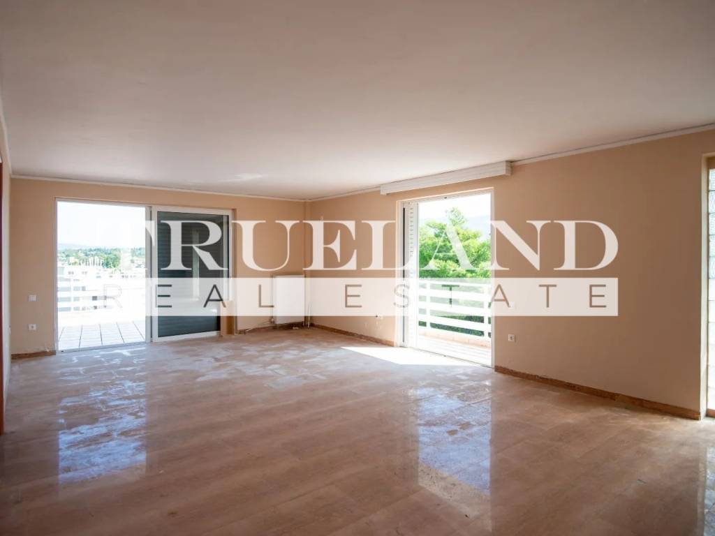 For sale in Maroussi, near Syngrou park, two-story maisonette, 4th and 5th floor, 147 sq.m., with separate entrances on each floor. Luxurious, bright, airy maisonette built in 1976, renovated in 2022 with three bedrooms and two bathrooms. Double glazing, security door, screens, elevator, drainage network, shared garden, oil central heating. On the fourth floor (50 sqm) there are two bedrooms with a bathroom and on the fifth floor (97 sqm) there is a kitchen, a large and very bright living room, a bathroom and a bedroom. There are terraces around the perimeter, with an unobstructed view. One parking space in a closed garage and use of a 17sqm ground floor warehouse. Near the KAT train station. Price: €520,000. TRUELAND REAL ESTATE IKE, Contact Phone: 2144080890, email: info@trueland.gr