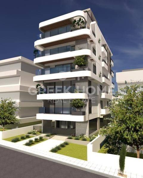 Glyfada, Terpsithea - Floor Apartment 133sqm bedrooms 3, 3rd, under construction, year built 2023, energy class A++, living room, kitchen, 2 bathrooms, heating type: autonomous (heat pump), parking, quiet, dual aspect apartment, luminous, sea view, frontage, electric roller shutters, storage space, external thermal insulation, balconies, elevator, thermal shut-off frames, double glazed windows, door screen, handicap ramp, secure door, video doorbell, luxurious, internet, pets allowed, investment property.
