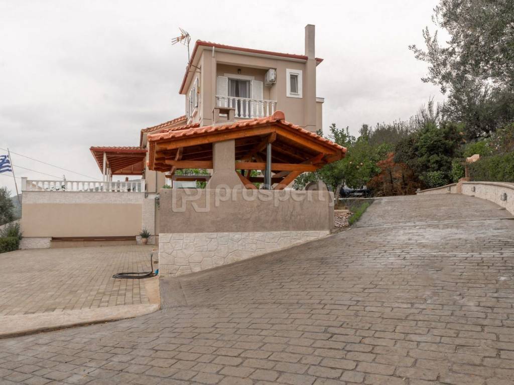 The building is 280 square meters and consists of two levels. The first level, which is self-contained, is 120 square meters and includes one bedroom, a storage room, a bathroom, and an open-plan kitchen-living-dining area with an additional fireplace. The second level is 160 square meters and consists of 2 master bedrooms, each with its own private bathroom, with the second one connecting to the main area through an internal staircase. Additionally, there is 1 more bedroom, 1 bathroom, and an open-plan kitchen, dining, and living area with another fireplace. On the exterior of the second level, there is a large balcony of 100 square meters with an unrestricted sea view and an additional outdoor kitchen of 10 square meters. The property is situated on a plot of land measuring 3,850 square meters, which includes approximately 35 olive trees and additional fruit-bearing trees. Moreover, in the outdoor space, there are barbecue areas, parking, a playground, and a small chapel. There is also the possibility to construct a swimming pool and a sports field on the property. The estate is located 200 meters from the under-construction suburban railway station, 200 meters from the village of Seliatika, and 300 meters from the sea. https://marketplace.theprosperty.com/listings/6953 ☎️ 210 6812500