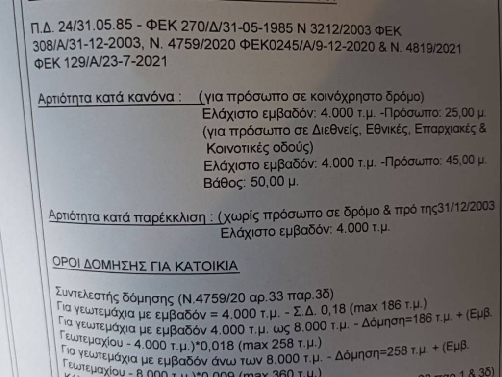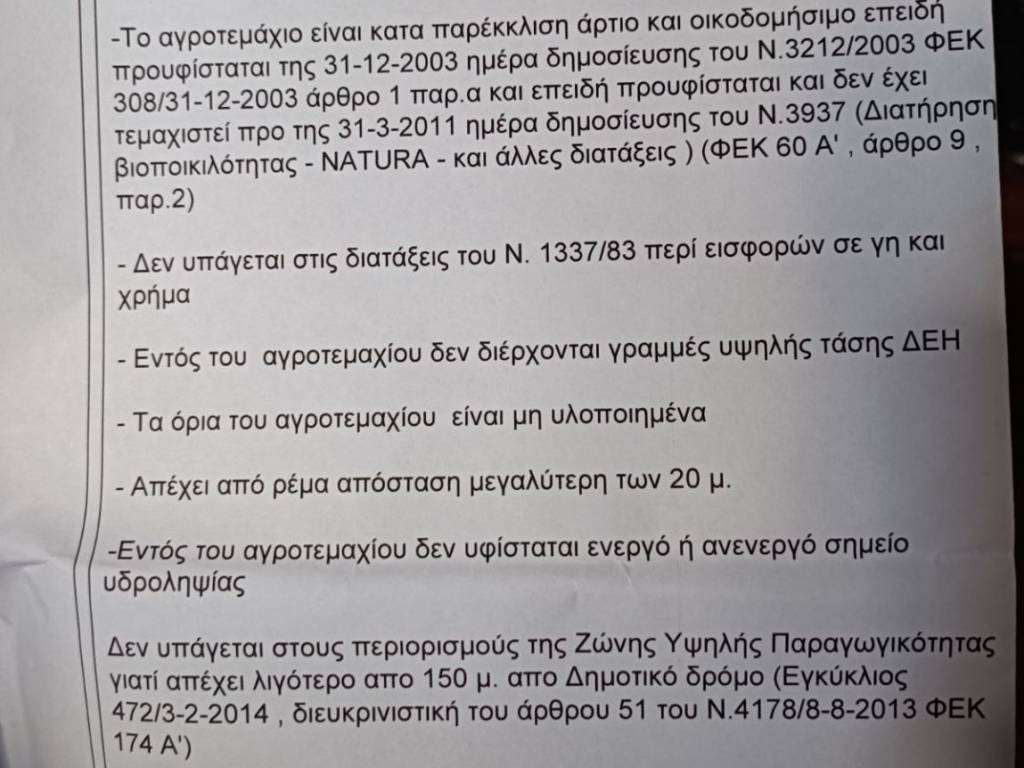 Πωλείται επίπεδο αγροτεμάχιο 9.470 τ.μ. με θέα θάλασσα Πρόκειται για έκταση 9.469,69 τ.μ. σε ορθογώνιο σχήμα, η οποία είναι επίπεδη και προσφέρει θέα στη θάλασσα. Το αγροτεμάχιο έχει μεγάλη πρόσοψη 63 μέτρα και βάθος 150 μέτρα. Βρίσκεται σε περιοχή εκτός σχεδίου (εντός ζώνης Natura 2000), είναι χαρακτηρισμένο ως μη δασικό και είναι άρτιο και οικοδομήσιμο. Δυνατότητες Δόμησης: Χτίζει έως 271,23 τ.μ. Επιτρεπόμενο ύψος: 7,5 μέτρα (2 όροφοι) Απαιτούμενη απόσταση από τα όρια: 15 μέτρα Πρόσβαση και Παροχές: Η πρόσβαση γίνεται μέσω χωματόδρομου, ενώ ο κεντρικός δρόμος με άσφαλτο βρίσκεται σε απόσταση 300 μέτρων.