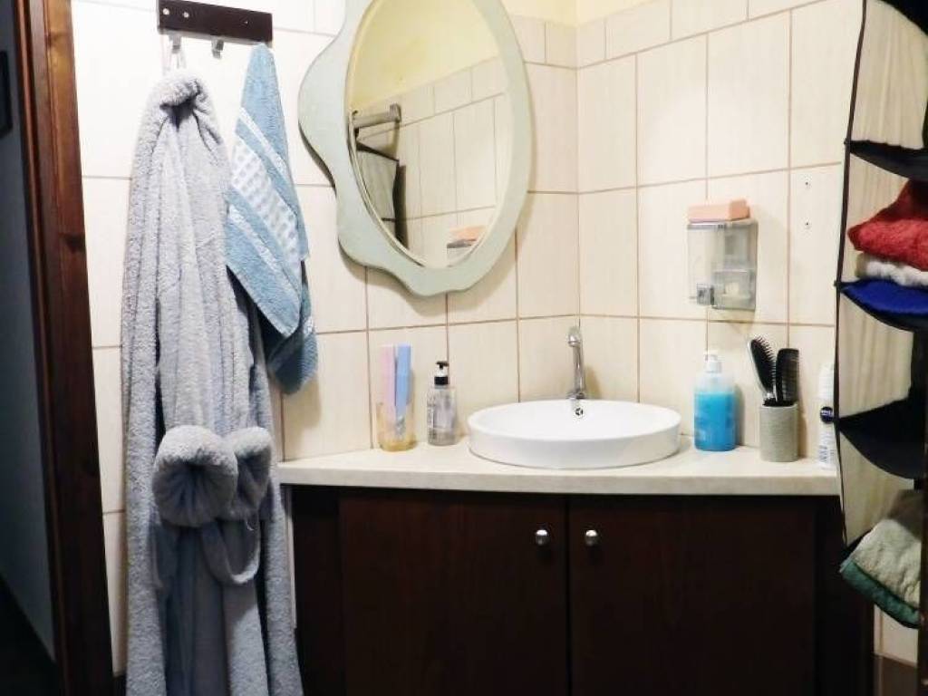 The apartment on the 1st floor needs renovation and consists of 3 bedrooms, 2 bathrooms, open plan living room-kitchen, a storage and spacious terraces.