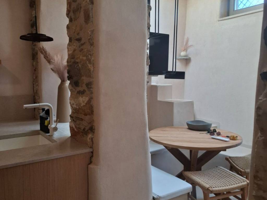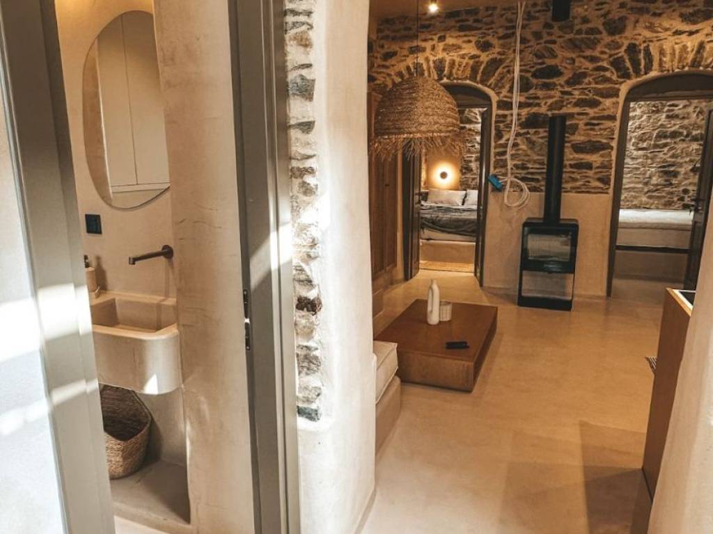 Selling price 274000 and 35000 equipment, total price 310000 euros. For sale is a luxurious reconstructed ground floor house with a total area of 55.00 sq m on a plot of equal area. The house is located in the Pefkakia area, within the historical and traditional settlement and is 7 minutes walk from the central square of Ermoupolis. The location of the property within the residential area. It consists of two bedrooms, living room, dining room, kitchen, bathroom and roof garden. The building is stone-built with an initial construction year of 1940 and a reinforced concrete slab coating with a construction year of 1974. Finally, it has been completely reconstructed in 2025. The luxurious reconstruction used the most modern methods, with quality materials only from specialized teams, with the constant supervision of an engineer. The house is sold fully equipped and furnished. Indicatively, it has a living room, dining room, wardrobes, household appliances, wood stove, air conditioning units, small kitchen appliances, dining room, storage spaces, lighting fixtures, television, garden seating area. It has an alarm, remote control and smart functions. The property has a complete file with a building permit, Ministry of Culture approvals, cadastre, energy certificate and building identity. In addition, it has easy access by car and there is easy free parking around the house.