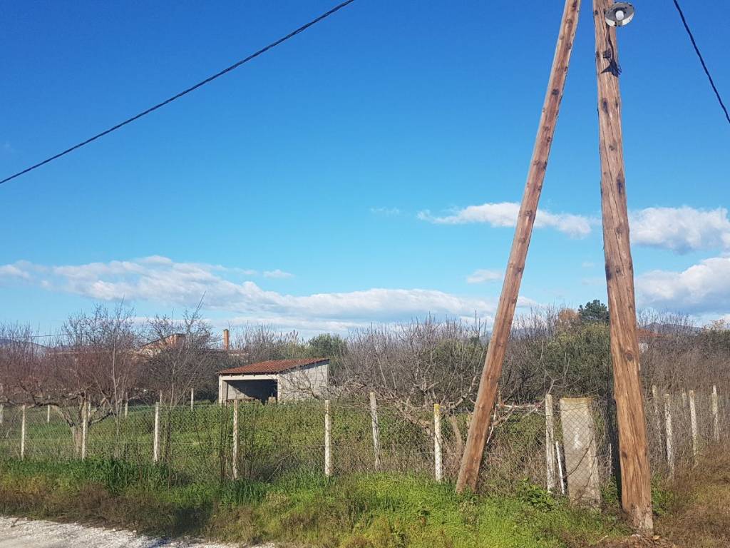Γωνιακό οικόπεδο, περιφραγμένο ,περιέχει 5-6 καρποφόρα μέτρια δέντρα, πηγάδι, μια κατασκευή 15 τμ που θα μπορούσε να χρησιμοποιηθεί ως Παρκινγκ ή αποθήκη