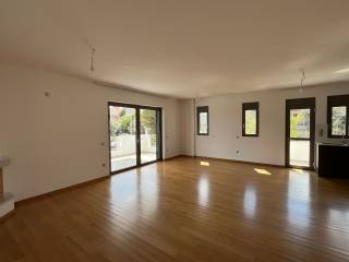 (Stavros area) Luxury corner apartment, featuring solid oak flooring throughout, top-of-the-line Alumil aluminum frames. Modern kitchen with quartz countertop, fully equipped with built-in oven, cooktop, and extractor hood. White lacquered wardrobes and oak interior doors. Underfloor heating and cooling system (dense layout) by Rehau with independent Daikin heat pump. Thermal insulation façade. Multi-zone alarm system. Structured cabling for telephone and internet in all rooms, satellite TV wiring, and fiber optic infrastructure. Remote control system for entrance access, temperature, etc. Three-phase electricity supply, voltage regulator, and provision for electric vehicle charging. Large balconies and terraces with additional exclusive use of a 120 sq.m. surrounding garden. Ideal for families. Close to private schools, Attiki Odos, and main roads. Available. No pets. No agents.