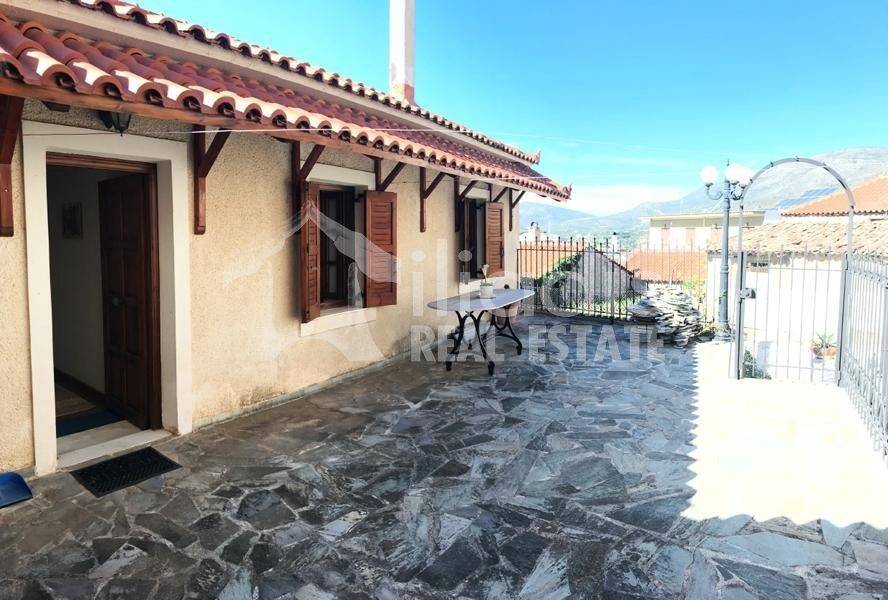 Asklipiio, Lygourio - Detached House 140sqm furnished fully, bedrooms 3, levels 2, ground floor (70sqm) - 1st (70sqm), excellent condition, energy class under issuance, living room, kitchen, 2 bathrooms, heating type: autonomous, parking covered, quiet, dual aspect apartment, luminous, frontage, storage space, fireplace, large balconies, frames wooden, double glazed windows, door screen, floor type wood & stone, without common charges, internal staircase, barbeque, within city plan, residential zone. A fully furnished and equipped maisonette with a total area of 140 sqm is for rent in the settlement of Lygourio. This is a residence that has been occasionally occupied as a holiday home. It consists of two levels which communicate with each other with an internal staircase. The ground floor of 70 sqm contains a spacious living room with an energy fireplace, a kitchen and a bathroom. The 1st floor of 70 sqm contains three bedrooms, a bathroom and access to a large terrace of 42 sqm with a barbecue and a view of the wider area. The residence has a closed space for storage and a garage of 40 sqm. It provides wooden frames with double glazing and window nets, stone and wood floors in the bedrooms, independent heating and electric water heater. It is a few meters away from the center of the settlement and the local market with the bank and schools of Lygourio and about 13 km from Ancient Epidaurus and the sea.