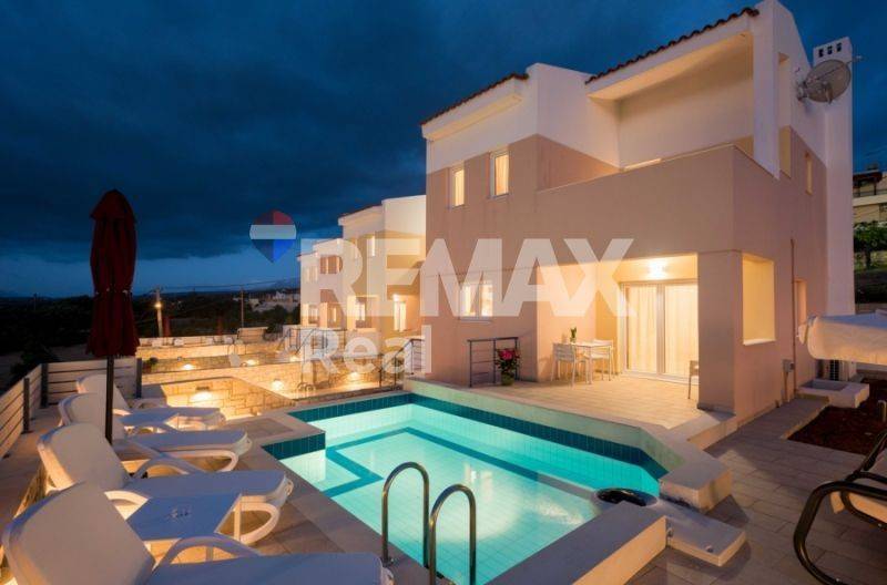 Luxury maisonette of 139 sq.m. for sale, on a plot of 167 sq.m. , which belongs to a complex of 5 independent private villas, in the wider area of Rethymnon. It consists of: Ground floor with kitchen, living room, wc and access to the garden and the private pool. Mezzanine with a studio with double bed, playroom and 1 bathroom with shower. 1st floor with 2 bedrooms each with its own balcony and 1 main bathroom. It also has: Security Door, Electrical Appliances,, Double Glazing, Balconies, Furnished, Air Conditioning, Solar, Private Pool, Private parking, fully landscaped outdoor space. The property is bright, in excellent condition, in a privileged location just 7 km from the city of Rethymnon and 2.5 km from the sea. Suitable for any professional and tourist investment. The maisonette can be delivered furnished, Immediately Available