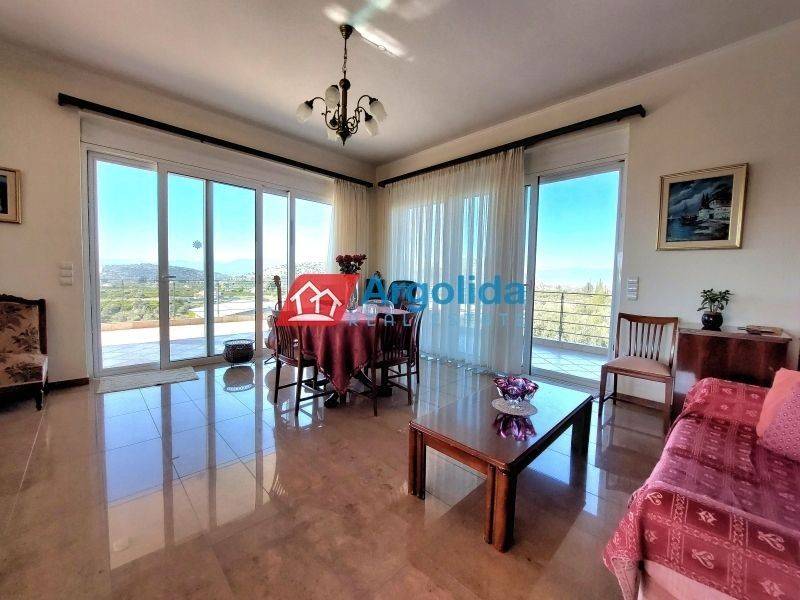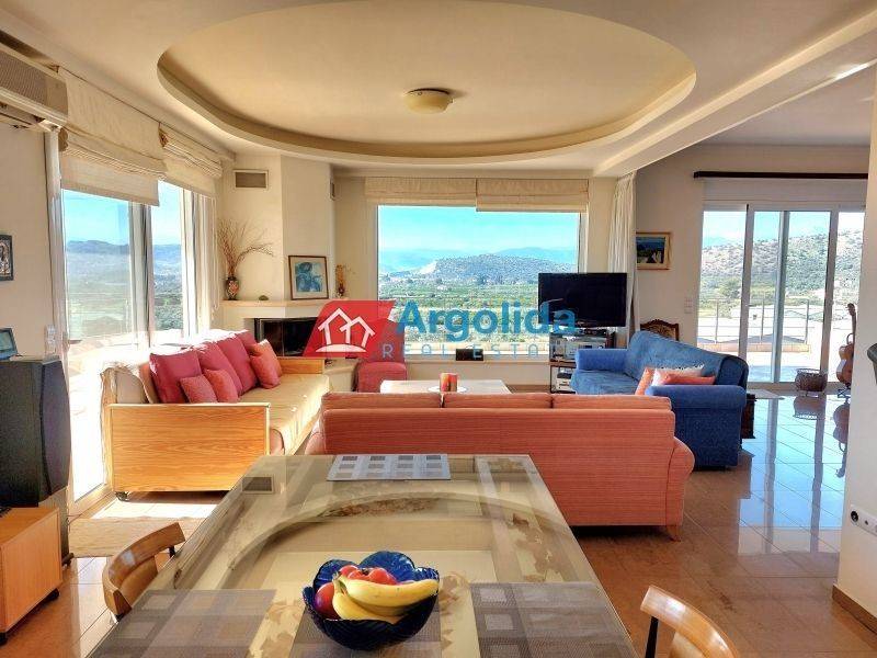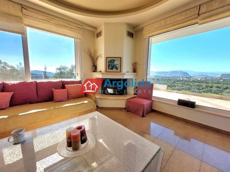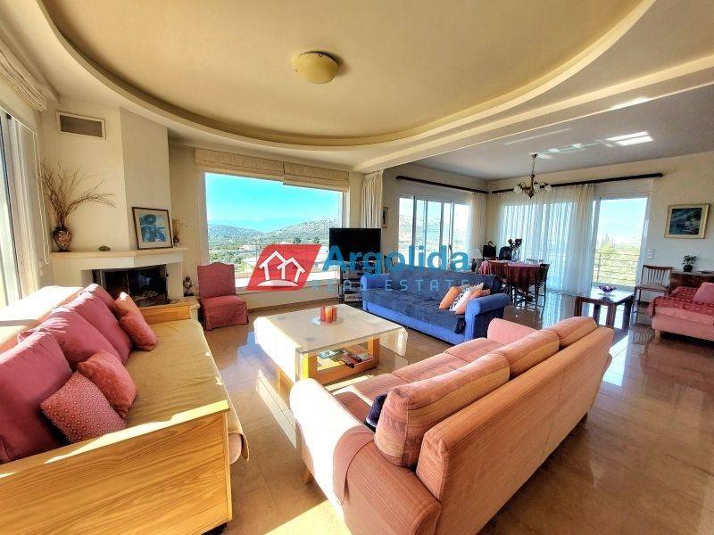 In the area of Agios Adrianos, Nafplio, a high-quality detached house is available for sale, with a total area of 254 sq.m. on two levels, plus an additional 170 sq.m. of ground-level (pilotis) space, which can be enclosed and used as auxiliary living area or independent apartment. The property was built in 2003 for private use with premium construction standards and excellent materials for its time. It features 4 bedrooms (including one master), 2 kitchens (one on each level), 4 bathrooms, a spacious and bright living room with energy-efficient fireplace, and large surrounding terraces offering panoramic views of Nafplio, Palamidi Castle, and the sea. It also includes elevator infrastructure from the basement to the upper floor and alarm system pre-installation, making it ideal as a permanent residence or a luxury property investment with easy access to Nafplio city and the beautiful beaches of the Argolis region.