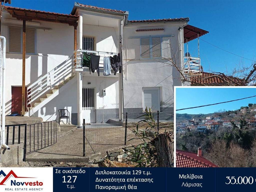 For sale two-family house ( with two independent houses ) in Melivoya Larissa. The property is located in a very nice and central point of the village, with panoramic views and easy access to restaurants, central square etc. On the first floor of the house there is a balcony with incredible views of the sea, the mountain and the village. Size of the house: 129 sq.m. (with the possibility of extending it by an additional 70 sq.m.) Energy Efficiency: B Location Melivoya is an ideal place for summer holidays and for nature lovers all year round. It is located at the foot of Kissavos, at an altitude of 450 m. and is only 8 km away. from the beautiful coastline of the region.