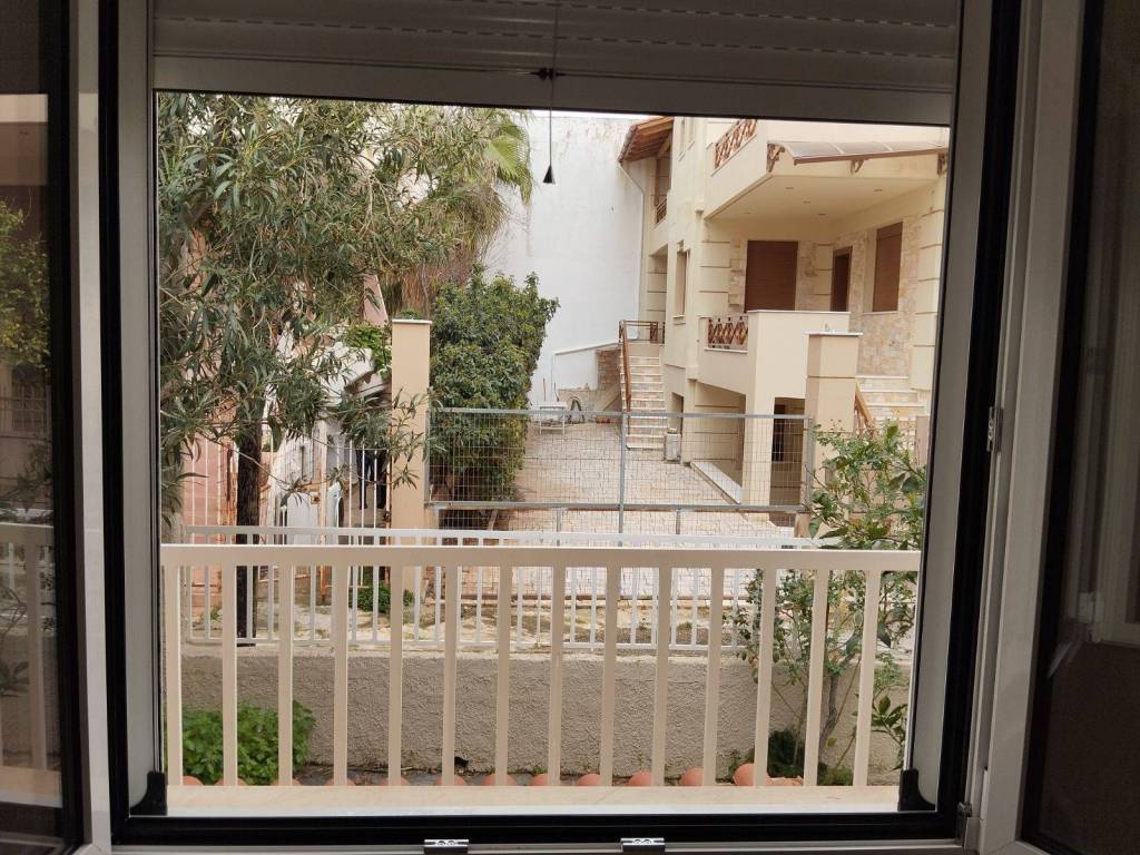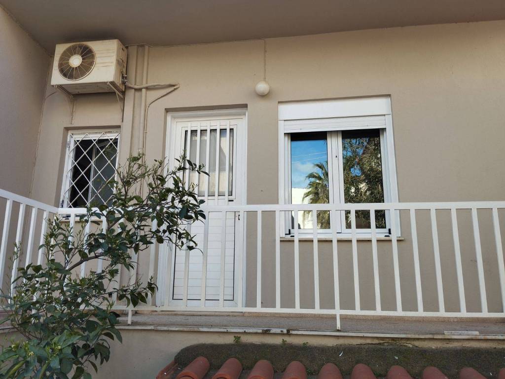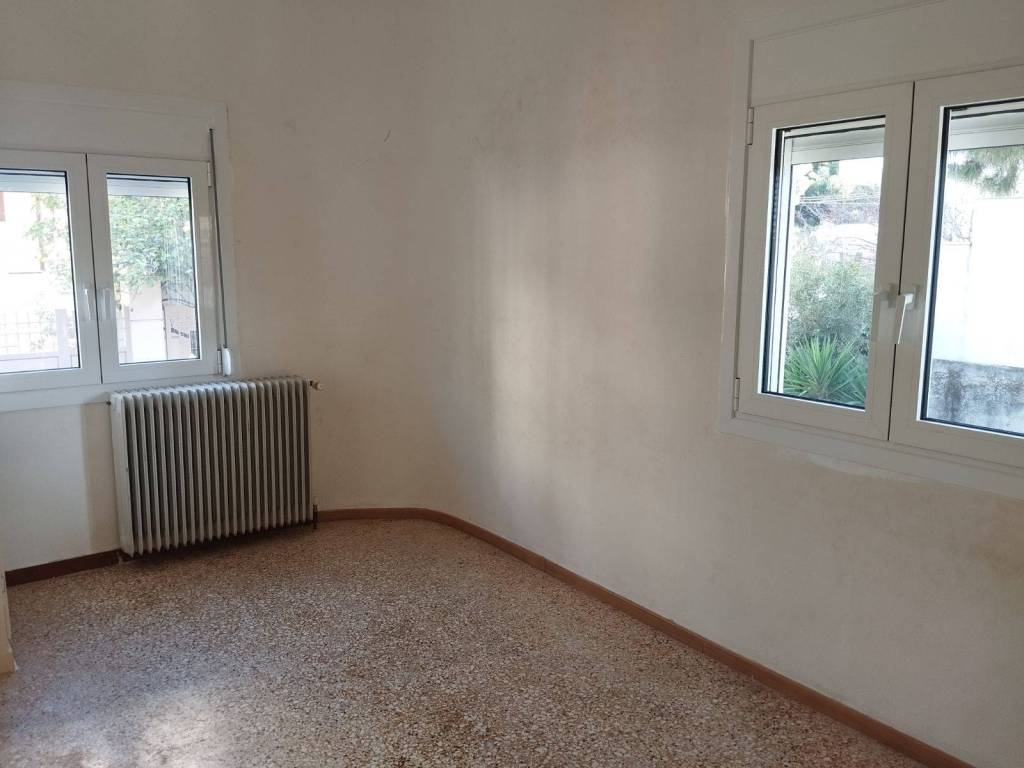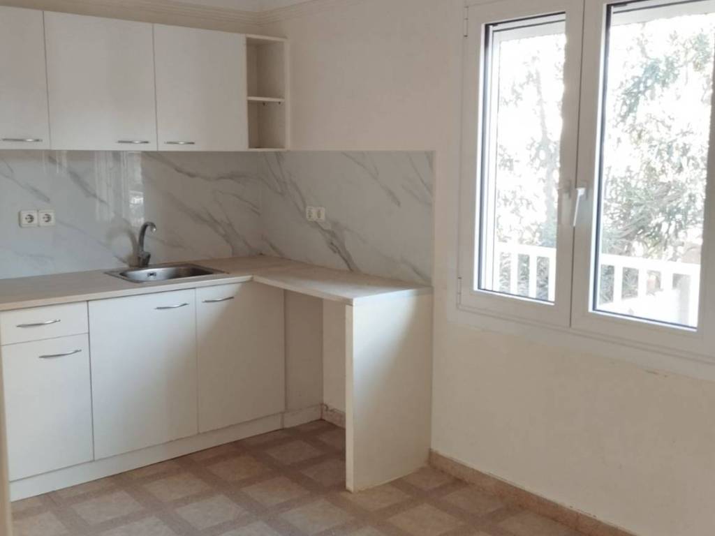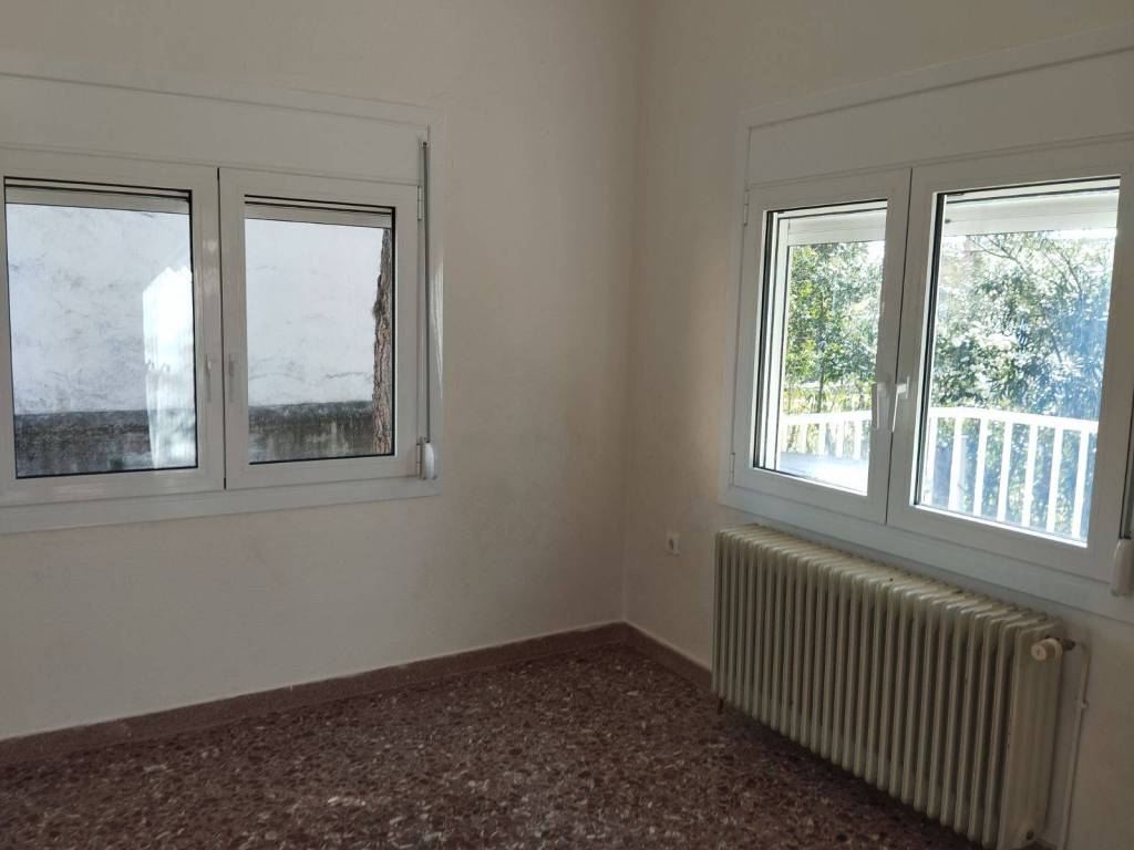 Nea Makri. Center. FOR RENT: Ground-floor detached house, with a total area of 75 sq.m., located 5 minutes on foot from the central square and 5 minutes from the sea. It consists of 2 bedrooms, a hall, living room, kitchen, bathroom, and basement. It features a large paved yard with well-maintained pine trees, a spacious veranda, as well as a second smaller veranda. Built in 1974, with new window aluminium frames and insect screens (2026) and a renovated kitchen (2024). Heating is autonomous (oil), and there is also air conditioning. Ideally available for long-term rental.