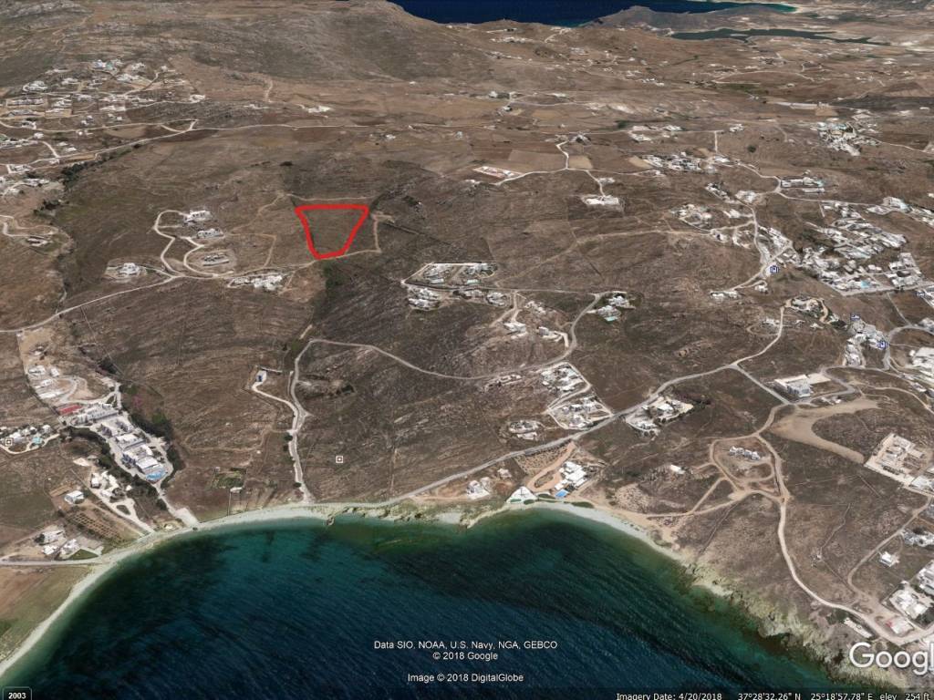 πρόσοψη σε αγροτικό δρόμο «προ του &#***/*******»και απόσταση από τη θάλασσα 598 μέτρα, με ασφαλείς τίτλους κτήσεως, εκτός των κυρωμένων δασικών χαρτών του νησιού, πρόσφορο για κατασκευή τουριστικών, επαγγελματικών ή ιδιωτικών εγκαταστάσεων και δημιουργία υπόσκαφων λόγω κλίσης του εδάφους, σε ωραία υπήνεμη τοποθεσία, άμεση σύνδεση με τον κεντρικό παραλιακό δρόμο που οδηγεί σε Αγιο Στέφανο, Τούρλο και στη μοναδική Χώρα