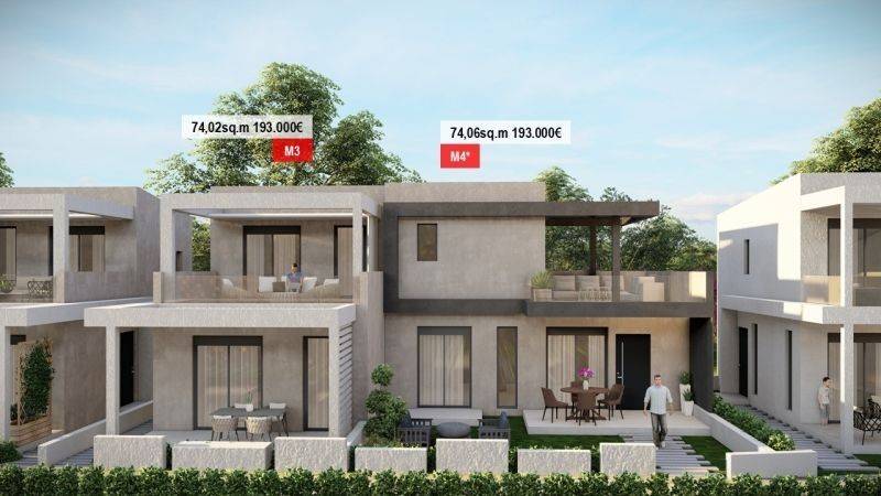• 8 Διώροφες Κατοικίες 74,02 τ.μ, που αποτελούνται από σαλοκουζίνα, 2 υπνοδωμάτια, 2 μπάνια.