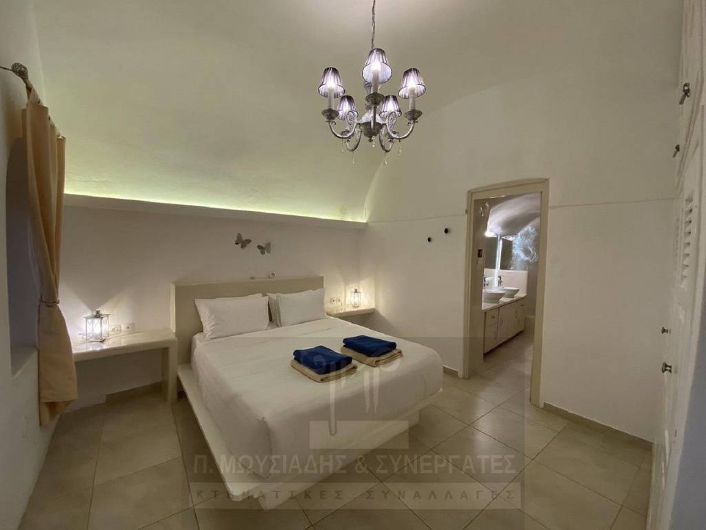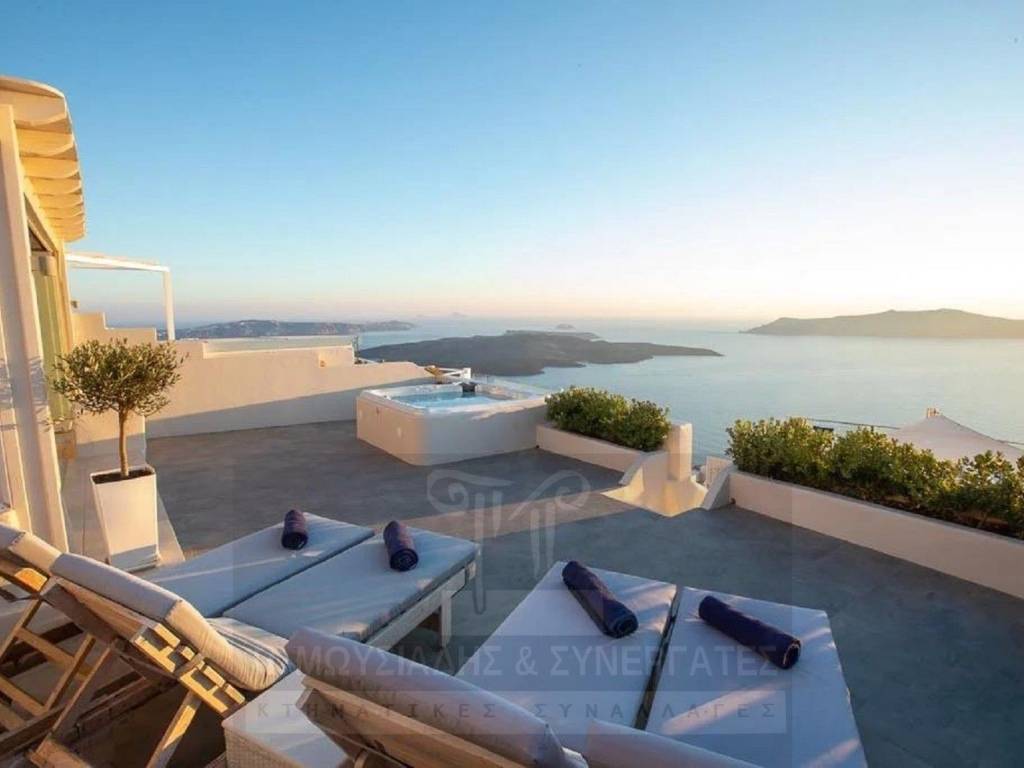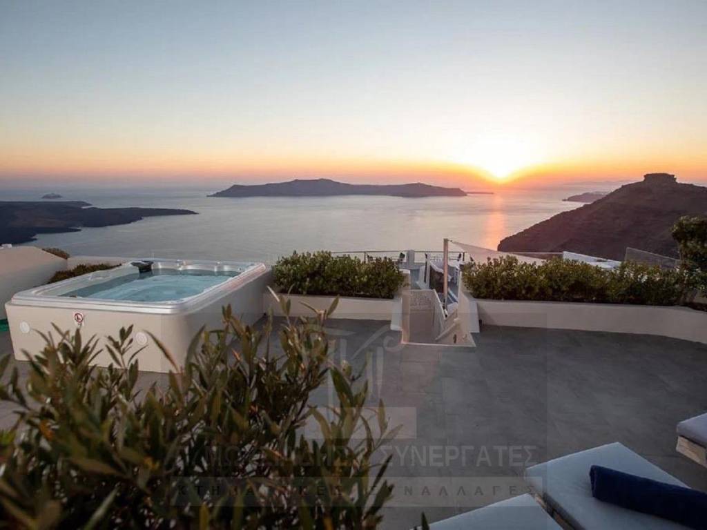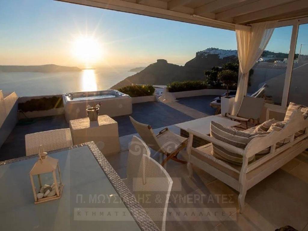Σαντορίνη, Φηροστεφάνι, πολυτελής βίλα 170τμ, 2 επιπέδων, επιπλωμένη, εξοπλισμένη και πλήρως ανακαινισμένη το 2010. Βρίσκεται σε ειδυλλιακή τοποθεσία, 10 λεπτά από τα Φηρά και έχει βεράντα με απρόσκοπτη θέα στην Καλντέρα και στο ηφαίστειο του νησιού. Αποτελείται από ψηλοτάβανο σαλόνι και τραπεζαρία, 3 υ/δ (1 master), μπάνιo, κουζίνα. Διαθέτει κουφώματα αλουμινίου με διπλά τζάμια, κλιματισμό, πόρτα ασφαλείας, συναγερμό, σκεπαστή πέργκολα, jacuzzi, ξεχωριστή αποθήκη 6τμ, πολλές θέσεις parking στο πίσω μέρος του ακινήτου. Τιμή Πώλησης: 1.900.000€ Κωδ.: 14005