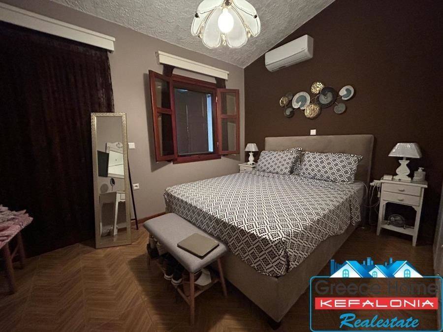 Paliki, Kaminarata, Detached house For Sale, 114 sq.m., In Plot 260 sq.m., Property Status: Amazing, Floor: Ground floor, 2 Level(s), 3 Bedrooms (1 Master), 1 Kitchen(s), 2 Bathroom(s), Heating: Autonomous - Petrol, View: Sea view, Building Year: 2010, Energy Certificate: Under publication, Floor type: Tiles, Type of door frames: Wooden, Features: Security door, Security alarm, Storage room, Fireplace, Attic, Night stream, Satellite Receiver, Cable TV, Internet Line, Electric Appliances, Playroom, Internal Staircase, Double Glazed Windows, Window Screens, Balconies, BBQ, Pets Allowed, No shared expenses, For Investment, Luxury, Mansion, Airy, Roadside, Bright, On Corner, AirConditioning, Solar water system, Boiler, Trees, Back yard (Garden), Renovated, Distance from: Airport (m): 15000, Seaside (m): 2500, City (m): 2500, Village (m): 10, Price: 230.000€. REAL ESTATE KEFALONIA, Tel: 6906987401, email: info@realestate-kefalonia.com