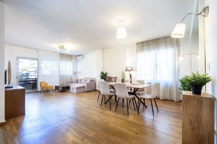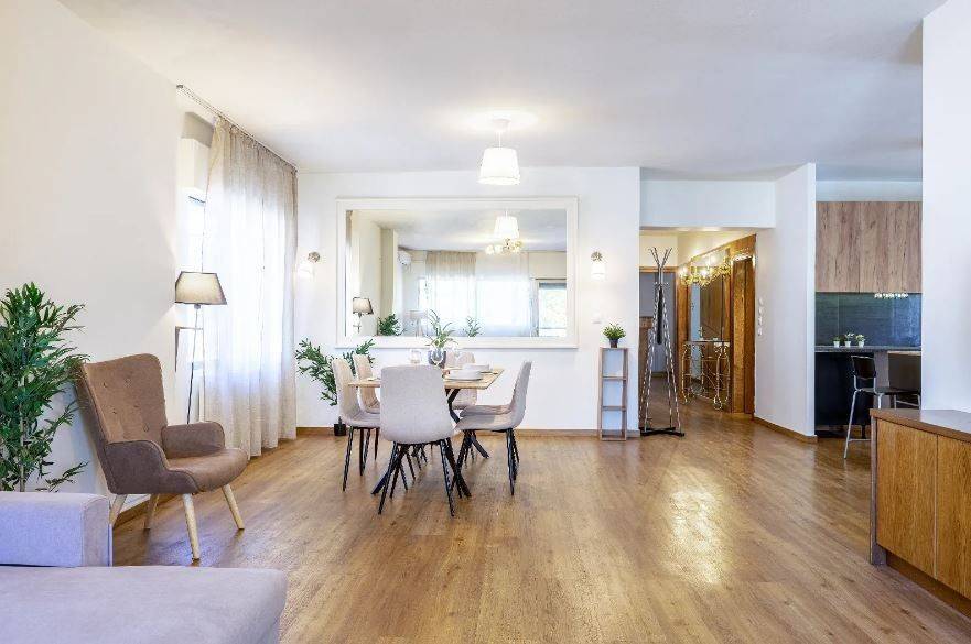 A fully renovated, furnished, and equipped apartment is available in the center of Kalamaria, ready for immediate occupancy. The apartment is located on the 3rd floor and has a total area of 150 sq.m. It consists of 4 bedrooms, a living room, a kitchen, a hall, and 2 bathrooms. It features individual natural gas heating and a security door. It is situated in an excellent location, offering easy access to shops, public transportation, and local amenities. All utility services are active (Electricity, Natural Gas, Water, Internet). Available immediately Rent: €1,500 / month