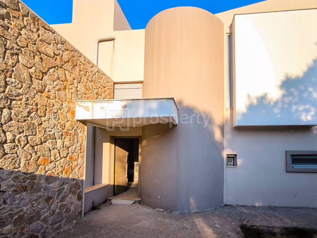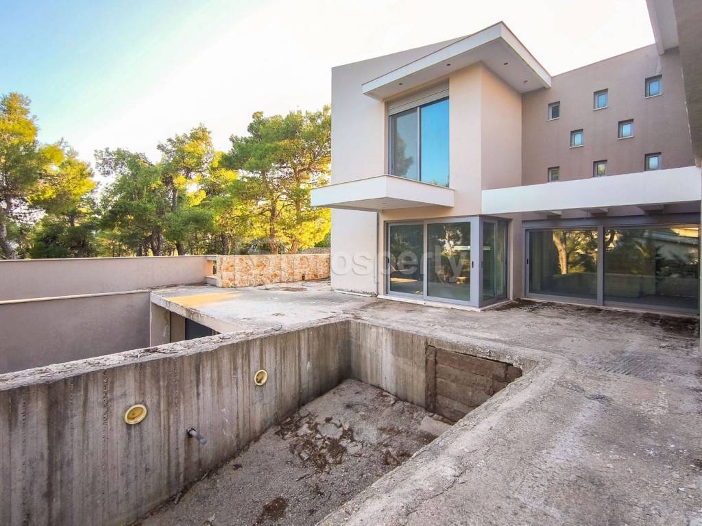 A modern, unfinished detached house in Ippokratio Politeia, covering 424 square meters and built on a 1,127 square meter plot. The basement (200 square meters) consists of 2 bedrooms, a laundry room, a home cinema, a gym, and a garage. The ground floor (112 square meters) includes a large enclosed kitchen, a living room with a fireplace, and a WC. The first floor has 3 bedrooms. The heating system is underfloor. The 32-square-meter pool is at the living room level. The surrounding area features stone-built walls. The windows are triplex, heavy-duty. It is located in the center of the Hippocratic State, 500 meters from Lake Beletsi and 10 minutes by car from the suburban station of Afidnes. The property is sold as-is. https://marketplace.theprosperty.com/listings/9214 ☎️ 210 6812500.