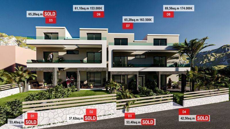 • 2 Διαμερίσματα ισογείου 53,4τ.μ, που αποτελούνται από σαλοκουζίνα, 2 υπνοδωμάτια, 1 μπάνιο.