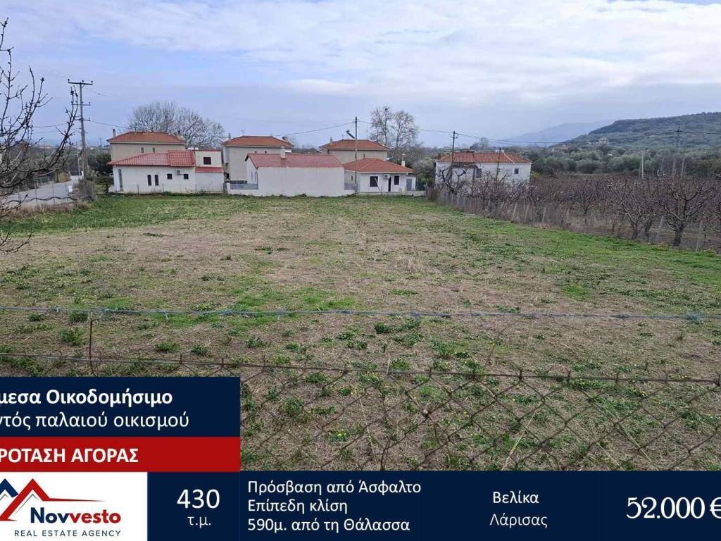 Προς πώληση, εντός οικισμού οικόπεδο στη Βελίκα Λάρισας, συνολικού εμβαδού 430 τ.μ. Το οικόπεδο αποτελεί μοναδική ευκαιρία για όσους ενδιαφέρονται να χτίσουν άμεσα την εξοχική τους κατοικία στα παράλια του Δήμου Αγιάς καθώς δεν δεσμεύεται από το Πολεοδομικό Σχέδιο της περιοχής. Βρίσκεται εντός παλαιού οικισμού και είναι άρτιο & οικοδομήσιμο με δυνατότητα άμεσης έκδοσης αδείας. Υπάρχει επίσης η δυνατότητα αγοράς μεγαλύτερου τμήματος του οικοπέδου, καθώς το συνολικό του εμβαδό ανέρχεται σε 2.500 τ.μ. και μπορεί να πωληθεί είτε τμηματικά είτε στο σύνολό του, κατόπιν συνεννόησης. **Συντελεστής Δόμησης 0.4. **Δυνατότητα άμεσης ηλεκτροδότησης & σύνδεσης στο κεντρικό δίκτυο αποχέτευσης. Το οικόπεδο βρίσκεται σε μια όμορφη συνοικία του οικισμού, ήσυχη και με καταπράσινη θέα. Το Novvesto Real Estate δραστηριοποιείται στα παράλια του Ν. Λάρισας και είναι δίπλα σας για να σας προτείνει επιλεγμένα και ελεγμένα ακίνητα για την εξοχική σας κατοικία και όχι μόνο. Για περισσότερες πληροφορίες επικοινωνήστε μαζί μας. Θα χαρούμε να σας εξυπηρετήσουμε. Novvesto Real Estate - Μεσιτικό Γραφείο Οδυσσέας Γραμμένος E-mail: odg@novvesto.gr ◉ Κωδικός ακινήτου: 2012B Λίγα Λόγια για τα παράλια του Δήμου Αγιάς: Εκεί που οι παρυφές του Κισσάβου συναντώνται με τα κρυστάλλινα νερά του Αιγαίου, εκεί ακριβώς θα βρείτε τα μοναδικά σε ομορφιά παράλια του Δήμου Αγιάς, με 26 καθηλωτικές παραλίες. Μια ακτογραμμή μήκους 45 χλμ που ξεκινά από την παραλία του Μύλου Γλυμένη στα όρια με τον νομό Μαγνησίας και φτάνει μέχρι την παραλία Στρίτζου στο Δέλτα Πηνειού. Μικροί κολπίσκοι αλλά και μεγάλες οργανωμένες & ελεύθερες αμμουδερές ακτές περιμένουν κάθε καλοκαίρι τους επισκέπτες τους για να τους αποκαλύψουν τις ομορφιές τους. Υποβρύχιες καταδύσεις σε ναυάγια της περιοχής είναι επίσης εφικτές σε όσους ενδιαφέρονται για μια ματιά κάτω από την επιφάνεια! Η περιοχή εκτός από τον θαλάσσιο θησαυρό της διαθέτει και έναν πλούσιο, καταπράσινο ημιορεινό όγκο που μπορείτε να απολαύσετε μέσα από τα χαραγμένα μονοπάτια της περιοχής: Μονοπάτι Βελίκας – Μελίβοιας, Δάσος Πολυδενδρίου (εξοχικό κτήμα της τέως βασιλικής οικογένειας ) κ.ά. Σημεία θρησκευτικού αλλά και αρχαιολογικού ενδιαφέροντος έρχονται να συμπληρώσουν την μαγεία αυτού του, κατά πολλούς, ευλογημένου τόπου: Μονή Ιωάννου Θεολόγου, Μοναστήρι Αγίων Αναργύρων, Μοναστήρι Αγίου Παντελεήμονος, Κάστρο Βελίκας, Αρχαιολογικός χώρος Κάτω Πολυδενδρίου κ.ά. Στην περιοχή μας δραστηριοποιείται και οργανωμένο γραφείο εξορμήσεων για αυτούς που αναζητούν την περιπέτεια και έχουν διάθεση να συνδυάσουν τις διακοπές τους με τα extreme sports για μια ολοκληρωμένη εμπειρία διακοπών όπως Canoe στο Δέλτα του Πηνειού, Canyoning στο Φαράγγι Καλυψούς, Zodiac Safari στις Σπηλιές Βένετου κ.ά.
