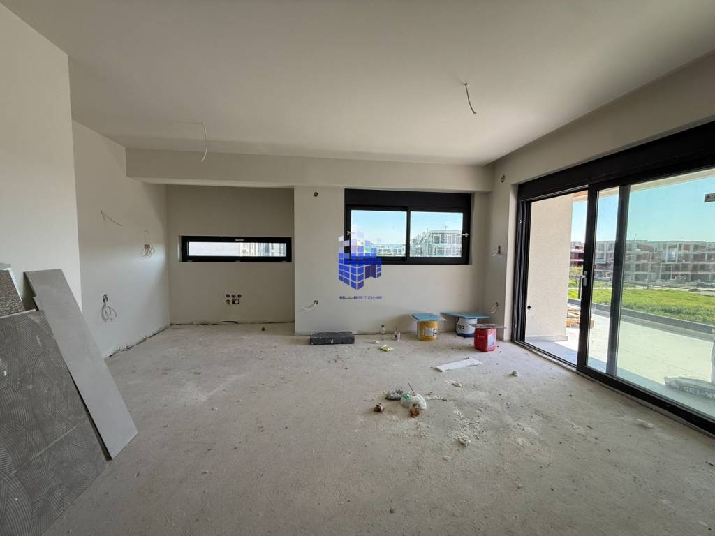 Thermi: FOR SALE bright corner apartment on the 1st floor, with a total area of 107 sq m. The property includes three spacious bedrooms, one of which is a Master Bedroom with its own spacious bathroom, a spacious living room-kitchen, a comfortable bathroom, storage space and parking space in the basement. The apartment is under construction, with an estimated delivery in July 2026. It has a high energy class A + with an external thermal facade shell and excellent insulation on floors and interior walls. It provides underfloor heating with a heat pump, energy-efficient thermally insulated - soundproof external frames with double glazing, tiles measuring 60x120, an armored security door and an elevator. The apartment is also equipped with disabled access and pre-installation for air conditioning, alarm and solar water heater. In addition, it offers spacious balconies with a total area of 15 sq.m. A modern apartment that combines functionality, security and high energy efficiency. Suitable for both homeownership and investment exploitation. You can visit our website: http://www.bluestonerealty.gr to be immediately informed about our new properties. *When indicating the property, it is necessary to indicate your identity and your VAT number in accordance with Law 4072/2012. *The exact point on the map does not correspond to the actual location of the property.