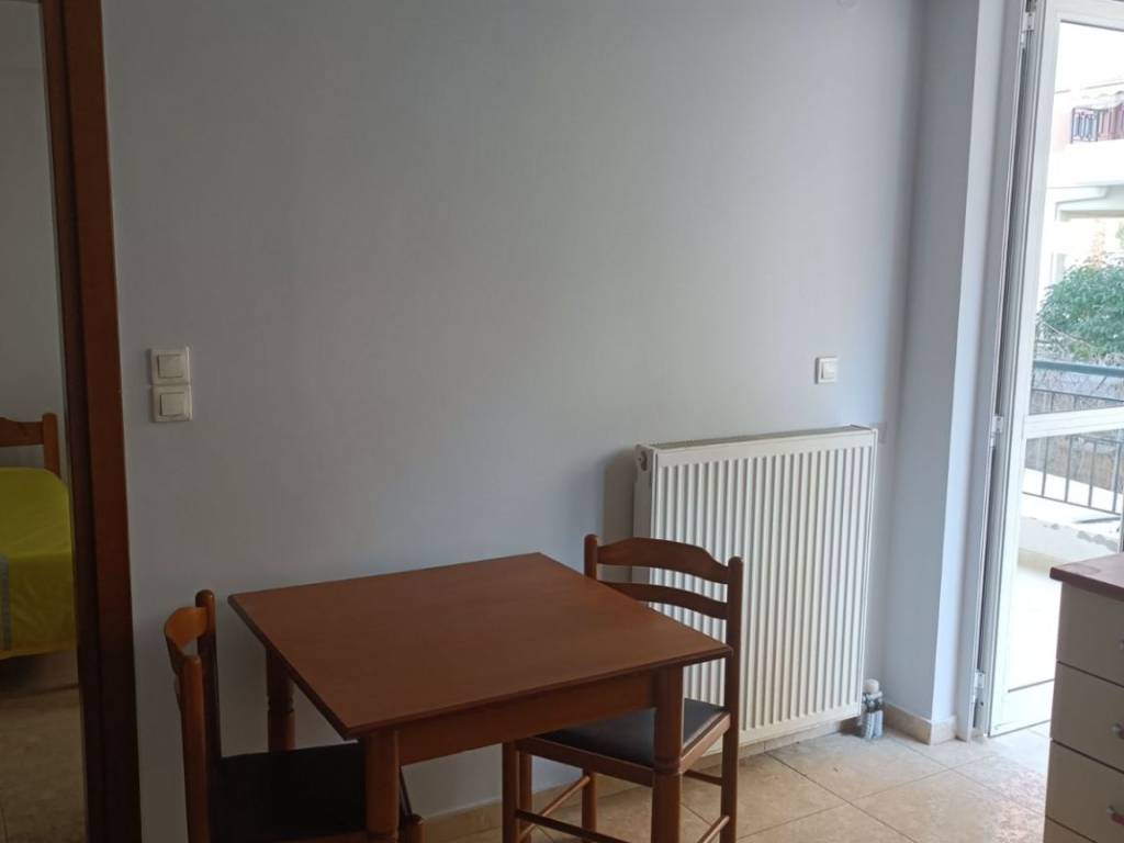 Ενοικιάζεται δίχωρο διαμέρισμα πρώτου ορόφου. Το οποίο αποτελείται από μια εξαιρετικά ευρύχωρη κουζίνα με έπιπλα και ηλεκτρικές συσκευές, ένα πολύ μεγάλο υπνοδωμάτιο με εντοιχισμένη ντουλάπα, μασιφ ημιδιπλο κρεβάτι με καινούριο στρώμα και ένα μικρό γραφείο. Στο μπάνιο υπάρχει χώρος πλυντηρίου και θερμοσίφωνας. Διαθέτει πόρτα ασφαλείας πολλαπλών σημείων κλειδώματος και μια ιδιαίτερα μεγάλη βεράντα σε όλο το μήκος του σπιτιού με απεριόριστη θέα στο πίσω μέρος της πολυκατοικίας. Στην τιμή περιλαμβάνεται αποθήκη 5 τετραγωνικών μέτρων στο υπόγειο της πολυκατοικίας.