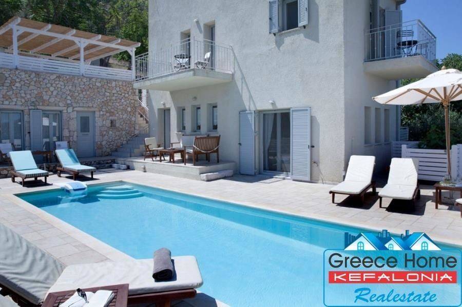 Argostoli, Villa For Sale, 240 sq.m., In Plot 250 sq.m., Floor: Ground floor, 2 Level(s), 4 Bedrooms 2 Kitchen(s), 5 Bathroom(s), 1 WC, Heating: Personal - Petrol, View: Good, Building Year: 2012, Energy Certificate: A, 1 parking(s), Floor type: Tiles, Type of door frames: Wooden, Features: Security door, Security alarm, Storage room, Attic, Night stream, Sattelite Receiver, Playroom, Internal Staircase, Double Glazed Windows, Window Screens, Balconies, Pets Allowed, For Investment, Furnished, Luxury, Airy, Roadside, Bright, AirConditioning, Solar water system, Back yard (Garden), New Construction, Painted, Renovated, Holiday Home, Distance from: Seaside (m): 1500, Price: 750.000€. REAL ESTATE KEFALONIA