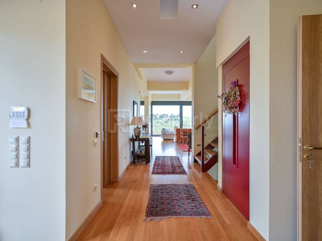 A very bright detached house with a stunning sea view, located in Kaphandriti. The 476 sqm property is situated on a sloping plot of 10,750 sqm and is developed on 3 levels. On the ground floor, there are spacious reception areas, two living rooms with an energy-efficient fireplace, a dining room with a beautiful sea view, a closed kitchen, and a bathroom. On the first floor, there is a comfortable master bedroom, a second bedroom with its own bathroom and wardrobe. There is also another room in a spacious attic with its own bathroom, which could be used as an office. On the lower level, with access to the garden due to the slope of the land, there are two bedrooms with en-suite bathrooms, auxiliary spaces for the house, and a parking space. The property offers large terraces with views of the greenery and the sea. Additionally, there is infrastructure for an elevator and the possibility of a swimming pool. A beautiful detached house in a quiet area, with easy access to the national road. https://marketplace.theprosperty.com/listings/2412 ☎️ 210 6812500.