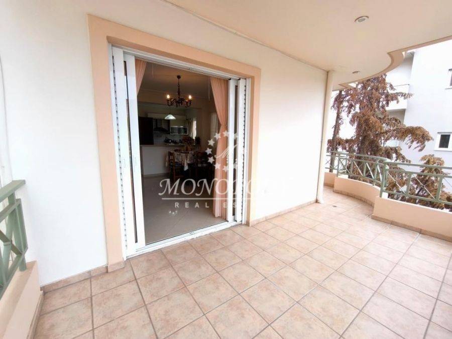 Vari - Center, in a quiet road, is an Apartment of 89sqm., on the 2nd floor, built in 2007, in excellent condition. It has a living-room with fireplace and dinning area, granite tile floors, access to the front and wide balcony of 11sqm. Next open plan kitchen, with German wooden cupboards and access to the side balcony 5*1,5m. There is 1 bathroom with bathtub and a window, and at the back are 2 bedrooms with closets and access to the back balcony. It has autonomous heating petrol, solar water system, security door, double glazed windows, balconies with mountain view, elevator, storage room in the basement and 1 open parking place. *Property location on the map can be approximate and not exact. *ID or Passport and TAX number are required for visiting the property, from each person that will be present.