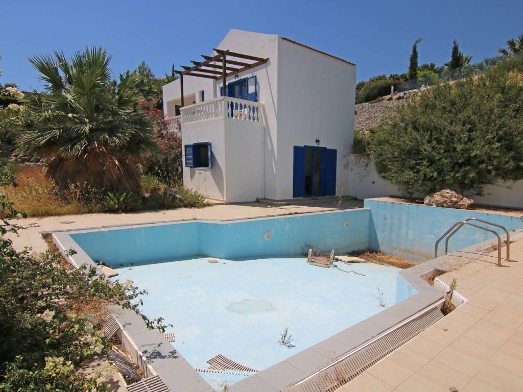 Two-storey house (M2) consisting of a raised basement-ground floor of 61.50 sq.m., 1st floor 54 sq.m., unrealizable ground floor garage of 12.65 sq.m., swimming pool 62.70 sq.m. and a right to rise , The property has a co-ownership rate of 30/000 on a field outside the plan area of a total area of 4.050 sq.m. 900 m from rural road Rhodes - Lindos & 4 km "Bagies" wild life shelter.