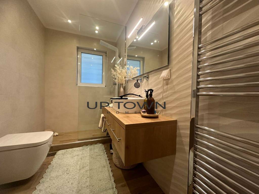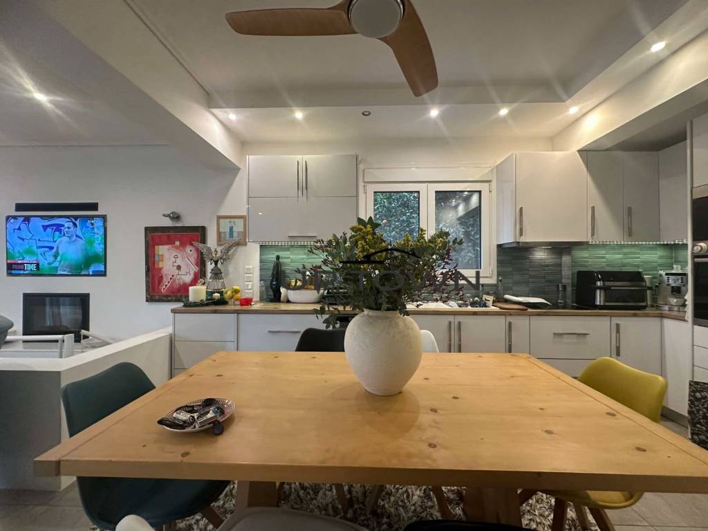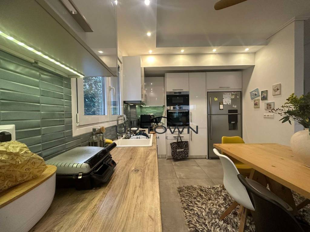 Excellent 140sq.m. two-level maisonette in the Kantza - Leontario area, built in 2019 with high quality materials. The property consists of a ground floor of 90sq.m. and a very bright lower floor of 50sq.m., which can be configured as a fully independent space, with its own entrance, living room and bathroom. The maisonette includes three bedrooms (two upstairs and one downstairs), two bathrooms, a kitchen and a spacious living room. It has an energy fireplace with insulating technology for energy saving, autonomous heating with oil, air conditioning, solar water heater, as well as soundproofing and thermal insulation for maximum comfort. The frames are aluminum with double glazing, while the floors are made of granite. The property is corner, front-facing, bright and with an open view of greenery. It has a garden with fruit trees and lawn, as well as an outdoor storage room of 7sq.m. In addition, it offers two open parking spaces, screens, electrical appliances, an alarm and two security doors. It is located in a quiet neighborhood, close to Ktima Kampas, the Erasmus School, the American School, as well as public transportation and the suburban train. It has no shared facilities and pets are allowed. This is an excellent property, ideal for families or for investment. For more information or to schedule a visit, contact us.