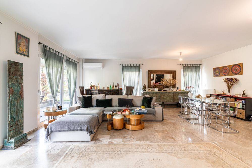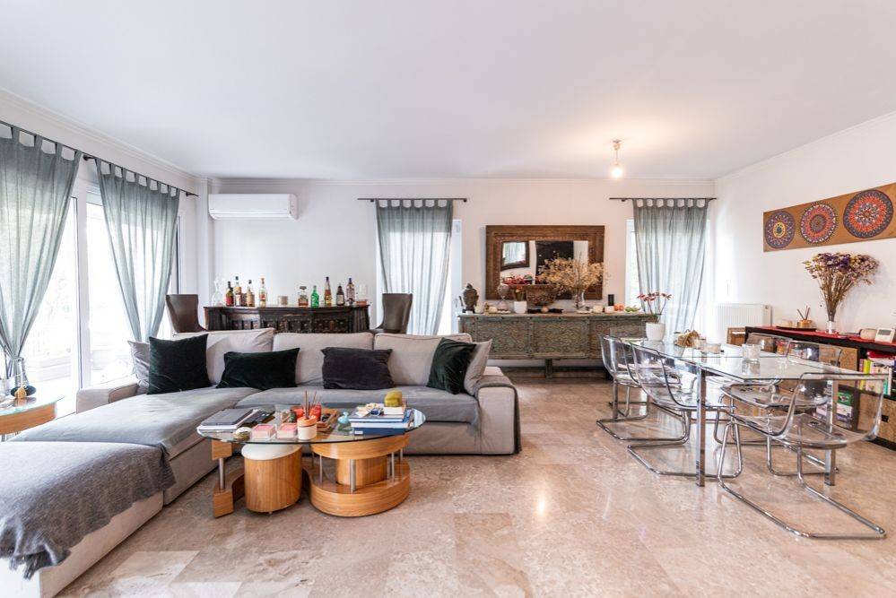 This spacious 138 sqm ground floor apartment, located in the heart of Glyfada just 600 meters from Esperidon Square, offers an ideal blend of comfort, style, and practicality. Its open-plan layout features a large living and dining area that seamlessly opens onto a comfortable balcony, perfect for enjoying outdoor moments. The kitchen is designed for modern living with an island, making it convenient for quick meals on the go, while also serving as a social space for entertaining. A guest bathroom, complete with a shower, is also located on this floor for convenience. The apartment features three generously sized bedrooms and a large main bathroom, offering ample space for family or guests. The location is unbeatable, with both the Esperidon and Nymfon Squares within walking distance, placing you right in the center of Glyfada's vibrant dining and shopping scene. This apartment is a great choice for a family home or a holiday retreat, combining a perfect location with a comfortable living space. There is a common parking area that can become exclusive once the property is purchased. The apartment occupies the entire third floor, ensuring privacy. Additionally, there is a 35 sqm storeroom, providing extra storage space. Built in 1972, the apartment was meticulously renovated in 2020 with top-of-the-line appliances and materials, featuring marble, tiles, and wooden floors throughout. This apartment is one of two available in the building, with the second apartment featuring the same layout, located on the third floor. This makes it an ideal investment opportunity in one of the most sought-after areas in Glyfada. Glyfada is the commercial hub of the Athens Riviera with busy commercial pace during the day and lively nightlife till dawn. It is a fashion destination with many branded boutiques but also many shops with a character and style. Blocked on one side of the city by the unique 18-hole golf course and next to it with hiking and cycling trails, Glyfada promises to offer the best for all ways of life. Unique features: A modern seaside destination with easy access to beaches, cafes, restaurants and summer beach bars and clubs. Glyfada is close to international schools and is a safe environment for raising children, has many opportunities for entertainment, fitness and sports and is an investment option with rewarding benefits. Also in the area you will find cinemas, modern boutiques, restaurants for every taste and budget, bars, lively outdoor life and one of the largest marinas along the coast. Accessibility: Glyfada is well connected to the city center and the coast by metro, tram and buses and is only a 30-minute drive from the port of Piraeus, offering a quick getaway to the islands and 35 minutes from the international airport. Investment dynamics: Glyfada has always been attractive to real estate investors and with the new reconstruction project of Elliniko, it is ready to experience a strong rise in property prices.