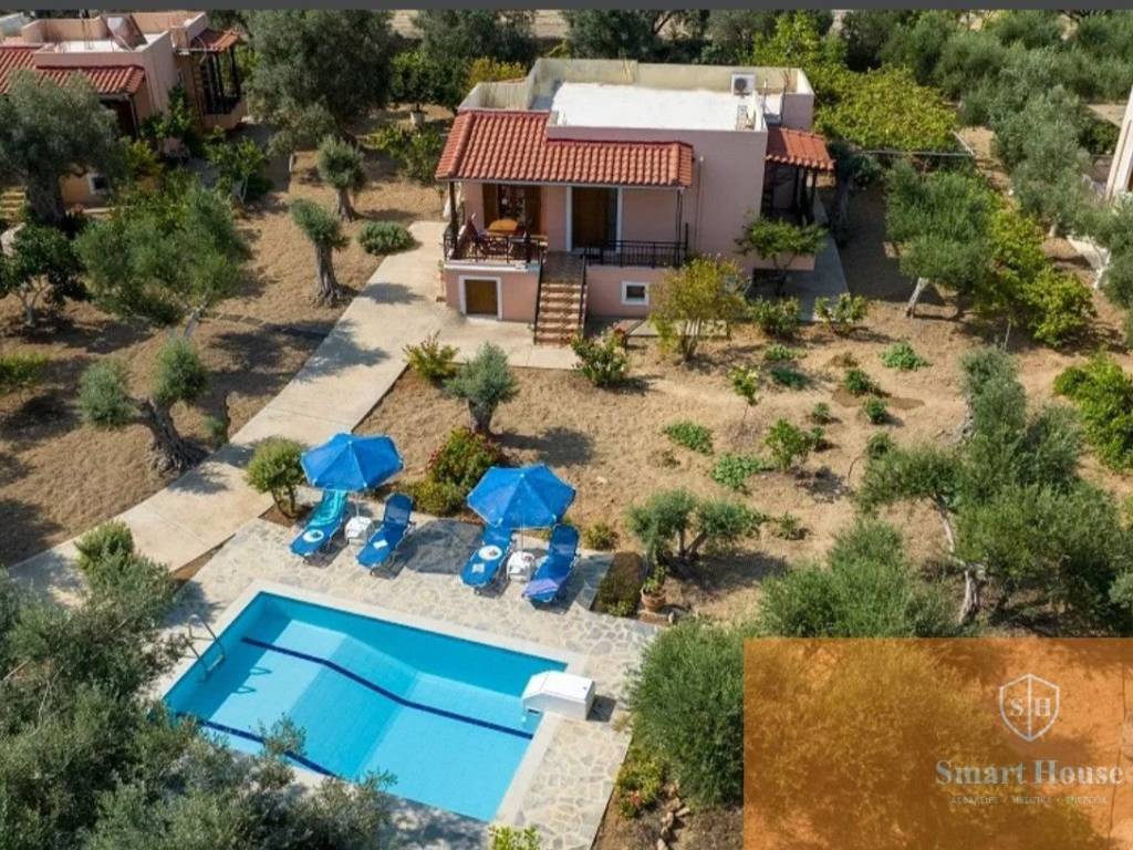 The villa is 80 square meters and offers accommodation for up to 4-5 people. It has 2 bedrooms (one double bed, 2 single beds), a sofa bed, a fully equipped kitchen, a bathroom with shower, air conditioning, mosquito nets, satellite smart TV, wi-fi connection, a terrace and large balconies.