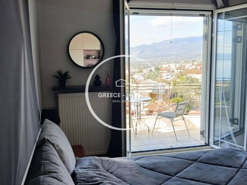 The first level consists of kitchen, living room, dining room, wc. Τhe fireplace in the living room is captivating and the large veranda offers unobstructed peripheral views of the Messinian Gulf as well as the entire city.