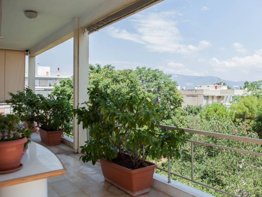 Διαμέρισμα 180 τμ σε οικόπεδο 1400τμ, 3 υ/δ, 2ος, κατασκευή 1978, σαλόνι, χωλ, κουζίνα, 2 μπάνια, αυτόνομη θέρμανση (φυσικό αέριο), κλιματισμός, 2 ανοιχτές θέσεις parking, διαμπερές, φωτεινό, θέα απεριόριστη, πρόσοψης, ηλιακός, τζάκι, βεράντες, μεγάλες βεράντες, εμβαδόν μπαλκονιών 100τμ, τέντες, ασανσέρ, πατάρι, κήπος, τύπος δαπέδων μάρμαρο & ξύλο, ανεξάρτητη κουζίνα, οικιστική ζώνη, κατάλληλο και για επαγγελματική στέγη. Διαθέτει κοινόχρηστο κήπο και 1 ανοιχτή θέση στάθμευσης. Τιμή €760.000