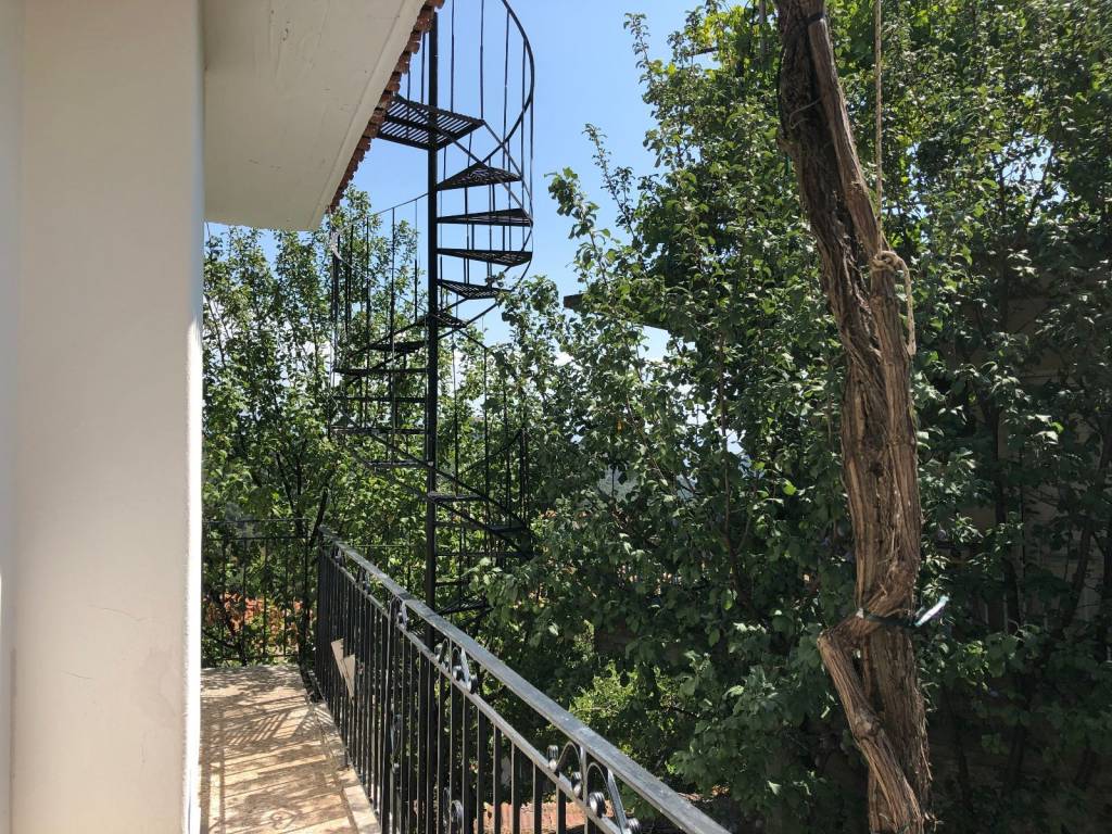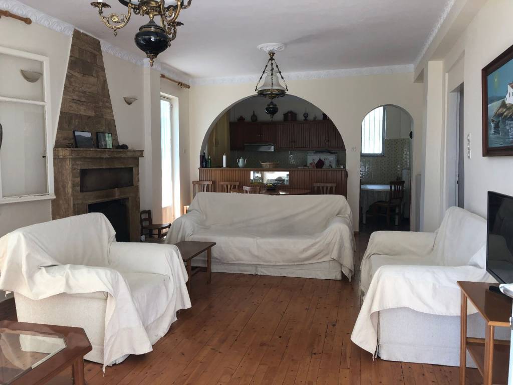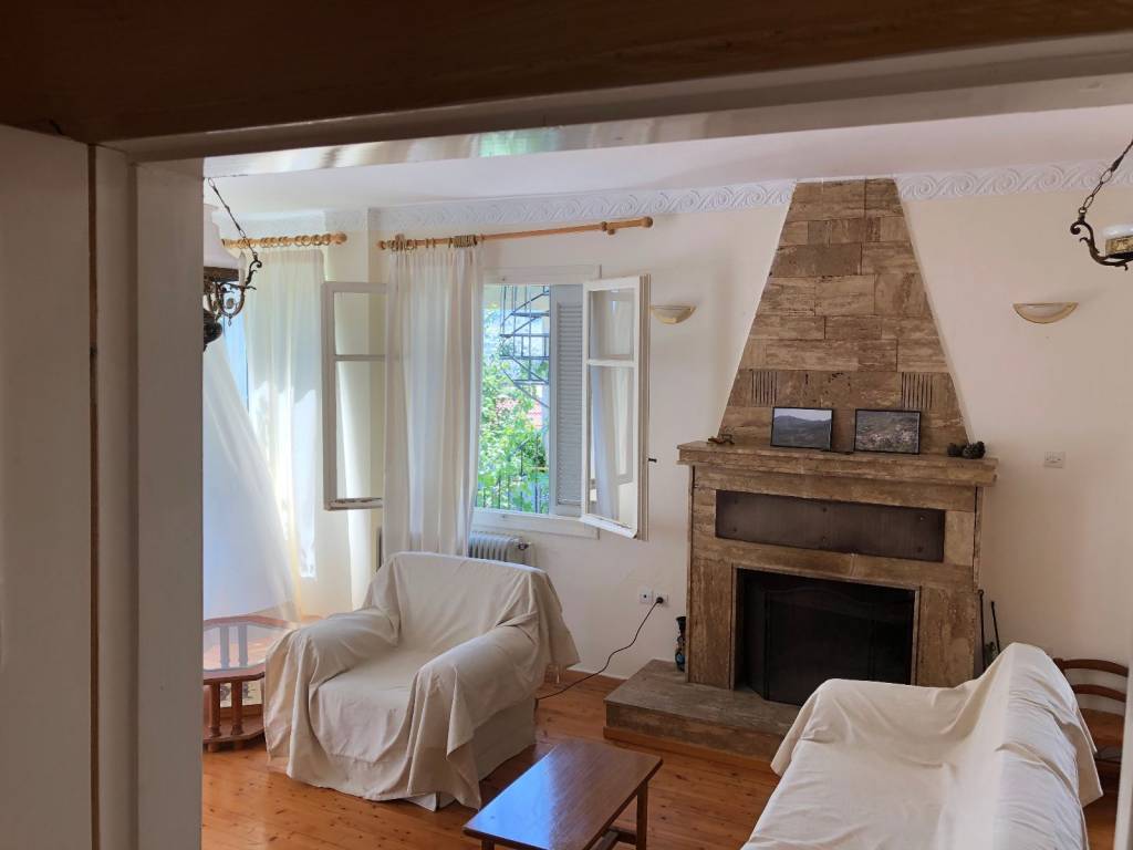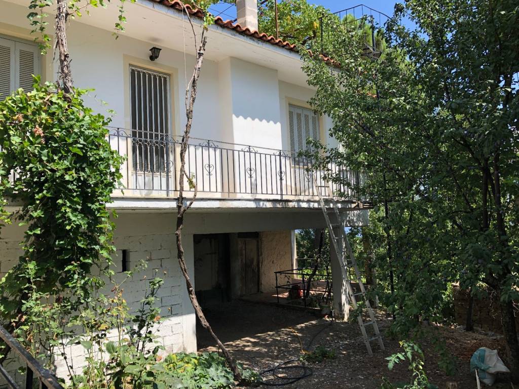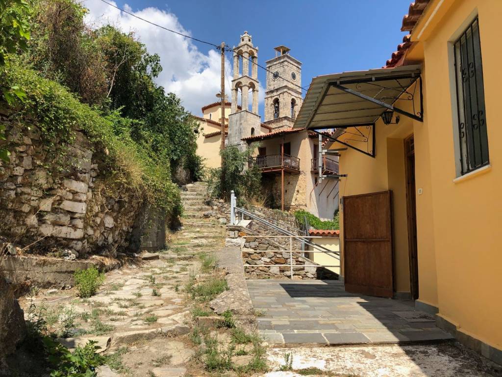 ANAVRYTI LAKONIAS (15 km from Sparta and 10 km from Mystras, on the foot of mount Taygetos), within the village limits. For sale: a 3-storey house with panoramic views, on a 424 m2 sloping plot, with bottom and top road access. The building consists of: a) an older house from the 1950s renovated in 1983 and b) a newer addition dating from 1983\ It has a total surface of 316 m2 and is developed on 4 levels: 1) The main house has a surface of 128 m2 and is located on the upper ground level (3rd floor). It is accessed from the main cobblestone street of the village, leading to the historic church of Agios Nikolaos. It features an open-plan double living room, with open kitchen and access to a side balcony, a large Master bedroom and a second smaller one, a fully equipped bathroom with space provisioned for a washing machine and a covered veranda of 17m2. 1bis) From the side balcony you gain access to the roof terrace via an external spiral staircase. A metal pergola covered in vine provides ample shade, and the view is exceptional. The main house has central heating (diesel boiler) and a working fireplace in the living room. All floors are hardwood and many walls are covered in wood panelling. The existing furniture can be made available upon prior agreement. 2) Intermediate stone level with an area of 98 m2 and an additional 17 m2 terrace. It can be accessed both from the main house, through an internal staircase, and from the side garden. These two levels can be easily separated to create 2 independent homes. The boiler room of the main house is also located on this level, in a separate covered area with external access. 3) Stone basement with ground access on the front, and an area of 50.40 m2., it is accessed from the level above through an internal staircase. (2) & (3) are currently enclosed storage spaces with direct access and can become habitable after configuration, while the main house is immediately habitable. The village of Anavryti is located at an altitude of 840m. on the foot of mount Taygetos, surrounded by landscape of unique natural beauty. It lies on the crossroads of numerous mountain trails, including the European E4. For additional information & appointments please contact Margarita on +**/******