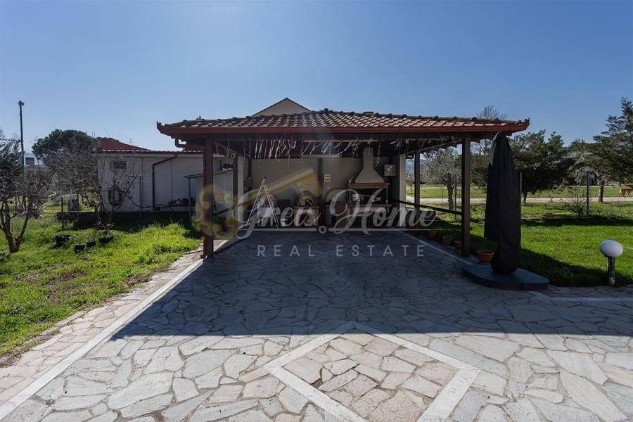Luxury Furnished Detached House for Sale | Near Thessaloniki 530 sq.m. built area | 4,800 sq.m. plot ✔ Three-level luxury residence with 7 bedrooms (1 master with private bathroom, dressing room & office) ✔ 2 spacious living rooms, 2 kitchens, 6 bathrooms (3 with shower) ✔ Fully furnished & equipped with built-in electrical appliances ✔ Double-glazed aluminium frames, insect screens, wardrobes in all bedrooms ✔ 2 fireplaces, 4 air conditioners ✔ Tiled floors & laminate in bedrooms ✔ Elevator, internal staircase, 2 armored doors, alarm system ✔ Large balconies, spacious yard, gazebo with BBQ ✔ Cultivable garden with olive trees & small vineyard ✔ Private borehole & water tank ✔ 2 closed garages with 3 parking spaces ✔ Photovoltaic system installation – annual income €4,500 ✔ Excellent location: 12 km / ~15 min from Macedonia Airport 13 km / ~20 min from Peraia 16 km / ~15 min from Thessaloniki city center 1.5 km / ~4 min from nearby village Unique property combining luxury, comfort, autonomy & high yield Perfect for family living, long-term residence or investment Exclusively sold by our office Price: €790,000 IMPORTANT NOTE: Exact location of the property is not provided as a pin For viewing the property, ID & Tax Number (AFM) are required as per Law 4072 / 11-4-2012 ΦΕΚ 86 Α. Viewing fee: 10€ Mobile: +30 6909 124320 Landline: +30 2314 080820 www.greishome.gr greishome11@gmail.com Real Estate Agency: Greis-Home G r e i s • H o m e
