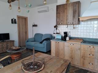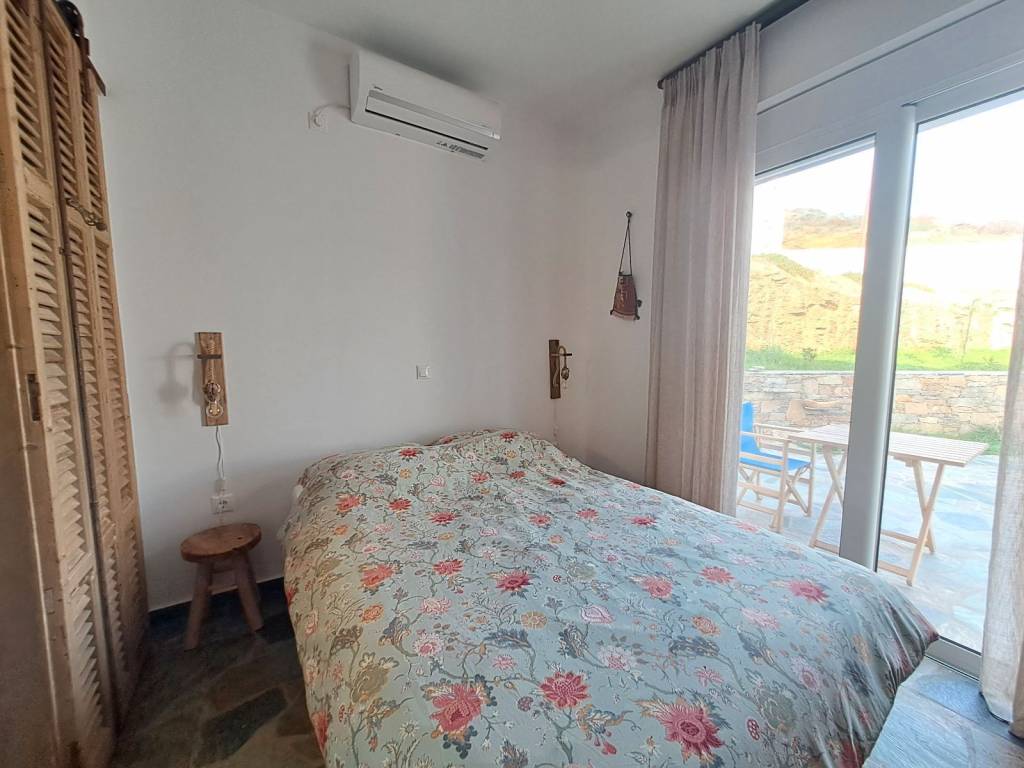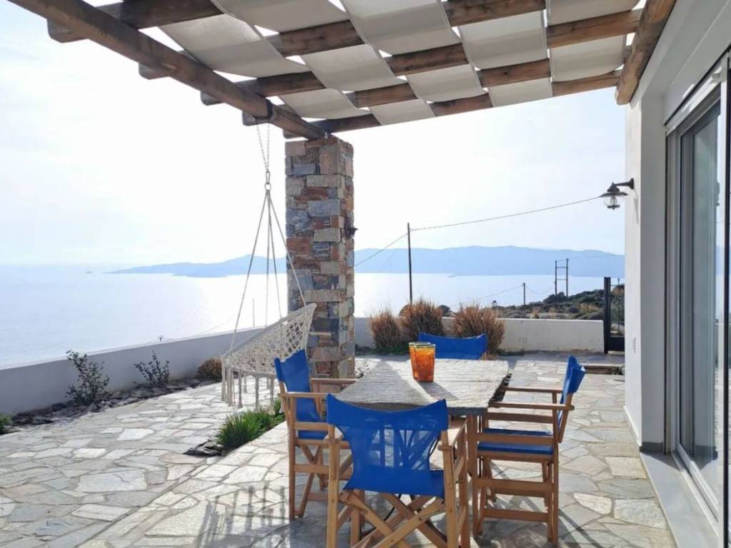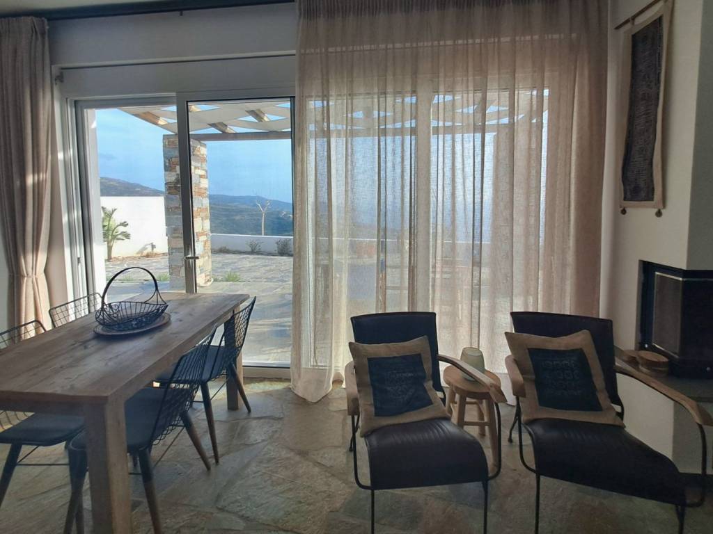Detached house of 70 sq.m., for rent, with magnificent sea view, combining the Cycladic style with modern elements. It has a living room with fireplace, fully equipped kitchen, and two bedrooms, each with its own bathroom, offering privacy and comfort. Outside, there is a small storage room, BBQ and a large courtyard, ideal for the summer months.
