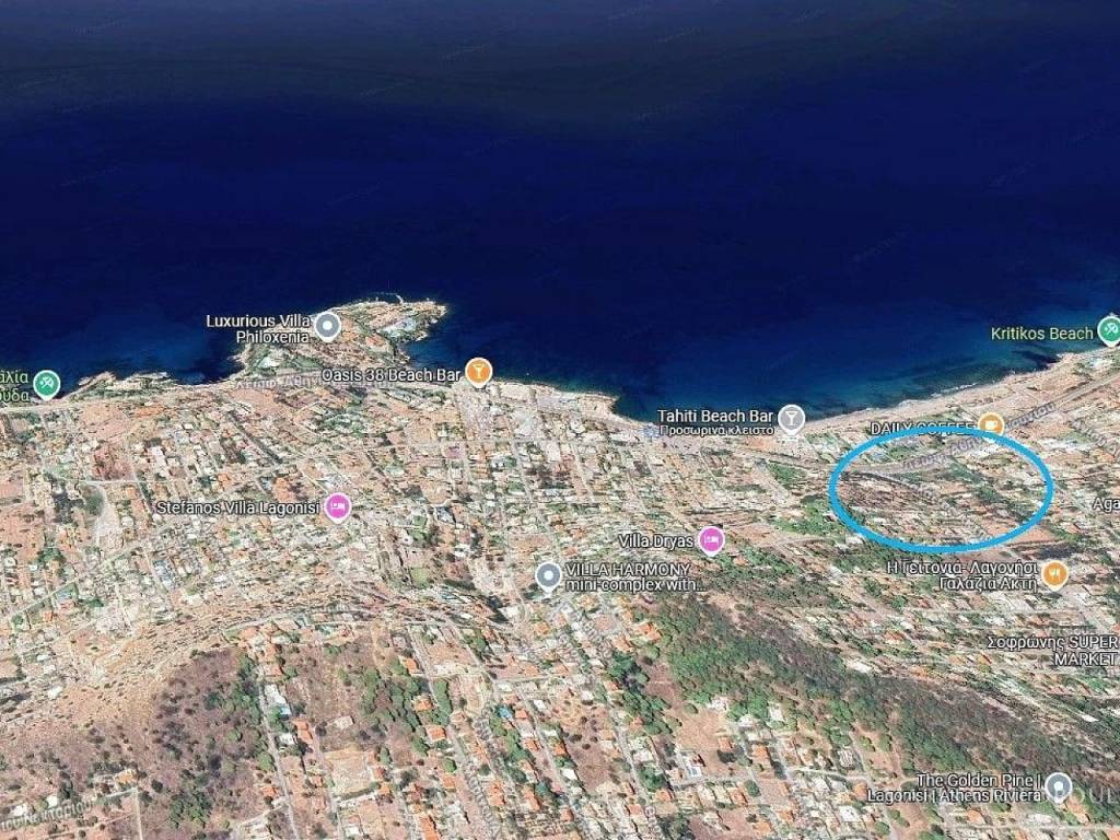 ΛΑΓΟΝΗΣΙ - Γαλάζια Ακτή, οικόπεδο 1035 τμ, σε περιοχή αμιγούς κατοικίας, εντός σχεδίου, 2 όψεων. 300 μέτρα από αμμώδη παραλία. Η πρόσοψη είναι 15 μ επί της κεντρικής οδού, ενώ στην πίσω πλευρά (αδιάνοιχτος δρόμος) είναι 17,5 μ. Σ.Δ: 0,3 κλιμακωτός, μέγιστο ύψος 8,5μ + στέγη. Κατοικία παλαιότητας νομιμοποιημένη ,συνολικής επιφανείας 203 τμ εντός του οικοπέδου, κατασκευής του 1980,η οποία χρήζει ανακαίνισης. 'Εχει υπαχθεί στο άρθρο 24 του 4014/2011, με πληρωμένη την τακτοποίηση - Ισόγειο, 133 τμ - Υπόγειο 70 τμ Εντός του οικοπέδου υπάρχει ενεργό πηγάδι. Απόσταση 300 μέτρων από την ακτή με οργανωμένες παραλίες της περιοχής, 400 μέτρων από τοπική αγορά, 3,7 χλμ από το Grand Resort Lagonisi και την Αγία Μαρίνα, 8 χλμ από την Σαρωνίδα, 9,5 χλμ από την Βάρκιζα και 22 χλμ από το αεροδρόμιο. Τιμή ζώνης 1450€.