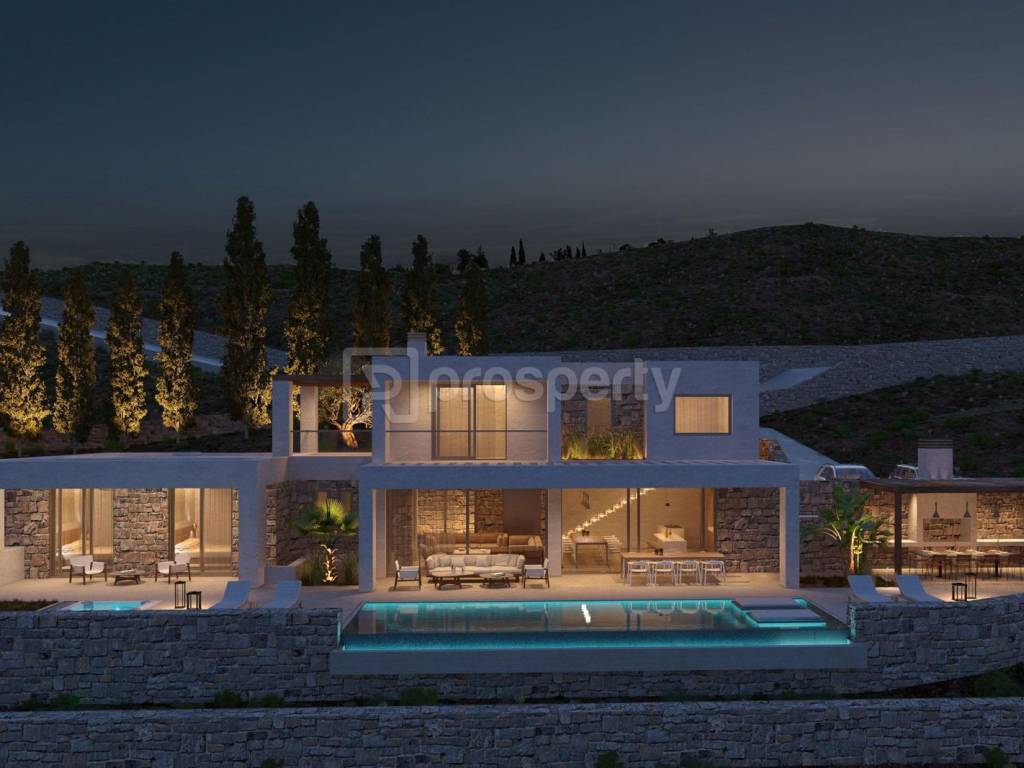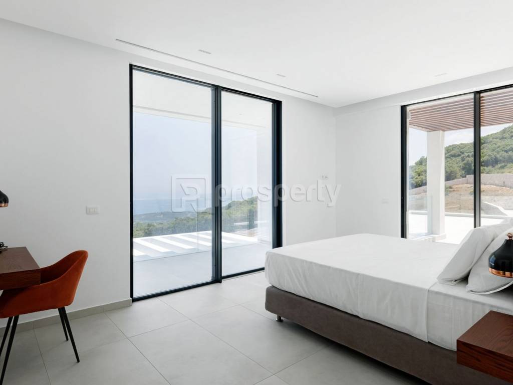 This luxurious 414.48 sq.m. villa in Zakynthos, set on a 6,492.02 sq.m. plot, offers privacy, tranquility, and stunning sea views. It spans three levels: the basement includes two master bedrooms, a playroom/fitness area, laundry, storage, and a mini bar; the ground floor features two master bedrooms and an open-plan kitchen/living room; the first floor boasts a master bedroom, dressing room, office, mini bar, bathtub, and outdoor hot tub. Outdoor amenities include a heated pool, hot tubs, helipad, yoga area, outdoor kitchen with BBQ, and a large water tank. Located 5 km from the sea, 30 km from Zakynthos town, and 34 km from the airport, the villa has an A+ energy rating, Smart Home system, underfloor heating, VRV heat pump, a 10kW photovoltaic system with battery, CCTV, Starlink Internet, and two EV chargers. It comes with high-end appliances (Miele & Liebherr), Italian furniture, and premium Media Strom beds (living room furniture excluded). A rare blend of luxury, comfort, and cutting-edge technology in one of Greece’s most beautiful locations. https://marketplace.theprosperty.com/listings/10492 ☎️ 210 6812500.