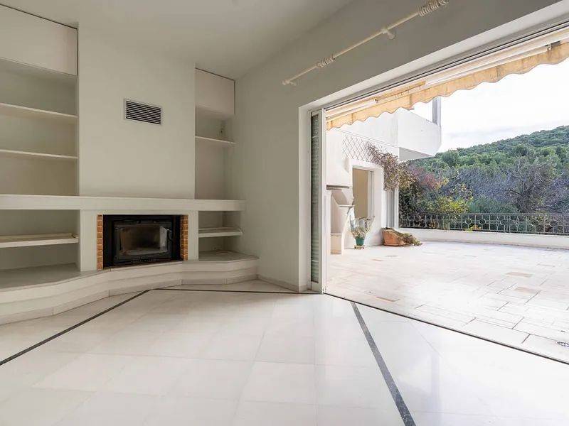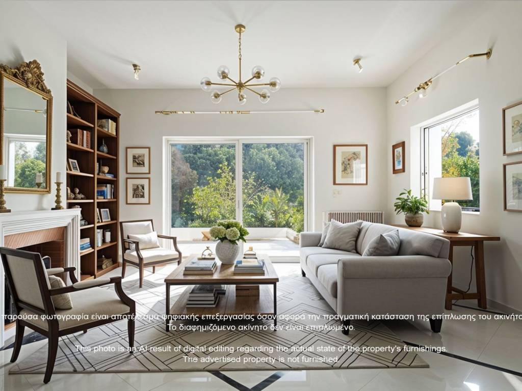 Elevated ground floor apartment in Melissia in a lush green garden and next to nature. It extends on one level with a total area of 214 sq.m., with a practical layout and functionally isolated spaces, serving the different needs of the residents. The house consists of 2 large, bright and airy rooms with marble floors and fireplaces, one of which is energy efficient. They are used as living room and sitting lounge respectively and have access to a large balcony with BBQ and greenery views. The living room area communicates with the open kitchen, which has a second entrance to the house. The apartment is completed by 4 bedrooms, all with fitted wardrobes, 2 large bathrooms, of which the master has a jacuzzi, as well as 1 W.C. and there are balconies around the perimeter of the house. In addition the apartment has a large, underground storage room, a wood storage area and a large garage. The construction materials are luxurious and the Energy Performance Certificate is currently being issued. This beautiful property, surrounded by greenery and within walking distance from the market and the center of Melissia, is the ideal choice for families seeking peace and comfort. Melissia is a green semi-mountainous suburb located in the northeast of the Attica basin and extends to the southwest foot of Mount Penteli, 15 km from the center of Athens. Unique Features: Its construction is characterized by modern apartment buildings and many beautiful houses that were built throughout the development of the suburb, in the last 60 years. The city balances among the various urban requirements and maintains its rural character, boasting a circular road design, while the main roads separate the area in the shopping center of Kato Melissia and the residential area of Panorama in the north, offering magnificent views across the Attica basin and the Saronic Gulf. The neighborhoods are divided by streams and forest areas, offering great trekking routes throughout the green hills, enjoying the area's superb microclimate, which played a major role in the city development at the dawn of the 20th century. The city has great sports facilities, and extensive health services, hosting some of the most important hospitals of Attica. Lots of cafes, trendy restaurants, and bars set up a vibrant lifestyle scene for the city, offering great spots for leisure and quality time with friends and families alike. Accessibility: The local market is very lively and sufficient, while the area is also served by the neighboring markets of Kifissia, Maroussi, Vrilissia and Halandri. It is 10 minutes distance from the metro stations of Doukissis Plakentias, Maroussi and Kifissia and just 25' from the Athens airport and the port of Rafina. Investment Dynamics: The area attracts real estate investors, offering good returns.