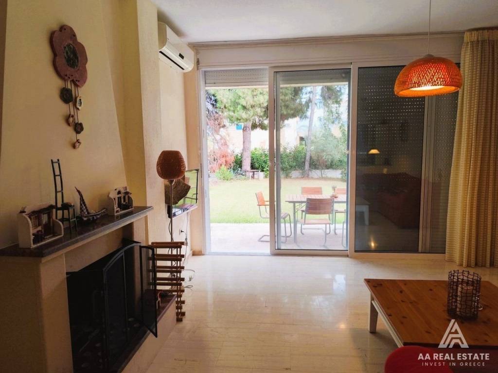 CHANIOTI HALKIDIKI - FOR SALE excellent two-story bright airy renovated furnished and fully equipped ground floor maisonette 350 meters from the wonderful sandy beach in Hanioti Halkidiki, 90sqm, has 2 bedrooms with verandas, living room kitchen fully equipped with electrical appliances stylish furniture and air conditioners, washing machine, wc and bathroom and parking space. It also has a 100 yard with lawn with direct access from the living room of the house. The price includes expenses (electricity, water, internet, common) near a supermarket with easy access from the main road. It is an excellent choice for unforgettable holidays by the sea. open parking spaces 1, number of floors in the building 2, painted, terace, type of glass duble, land surface 150, energy class B, inside settlement, country house, furnished, indoor lader, zone vacation, view, garden, air conditioning, frames synthetic, equiped, luxury home, security door, orientation eastwest, access asphalt, facade, insect screen, negotiable price, alarm, awning, flooring type tile, bright