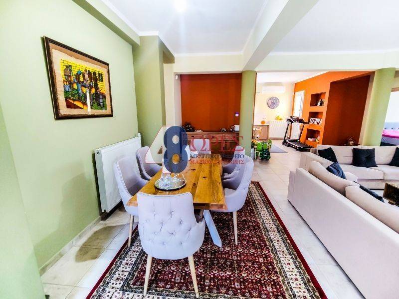 Code: 5487 In M. Limnionas, for sale, on a plot of land of 714.59 sq.m. luxury maisonette with a total area of 417.72 sq.m. which is developed in three levels. It was built in 2015 and has all the modern and luxurious features and amenities. The main entrance level of 130.09 sq.m., stands out for the comfortable reception area and the huge open-plan living room with dining area surrounded by light. On the same level is the fully equipped and bright kitchen, as well as two bedrooms, internal storage and a bathroom. From this level there is direct access to semi-outdoor spaces with a total area of 40.70 sq.m. On the upper level of 97.48 m2, the construction of which has not been fully completed, we are transported by an internal staircase and find three bedrooms, one of which is a master room with a private bathroom and another bathroom. On this level we have beautiful balconies of 9.19 sq.m. with a wonderful panoramic view. On the ground floor of the residence there is a covered parking space and the boiler room with a total area of 60.87 sq.m. and two independent apartments with independent entrance each, one with a surface area of 58.15 sq.m. consisting of a single space kitchen - living room - dining room, 1 bedroom and the bathroom and the second one in an unfinished state of 56.30 sq.m. The residence has an energy fireplace, independent oil heating per level, air conditioning, boiler, solar water heater and fountain 9.38 sq.m. It is a modern, elegant residence of high aesthetics, which combines affordable luxury living with the tranquility that all modern comforts and facilities can offer and is a perfect choice for a permanent or holiday home.
