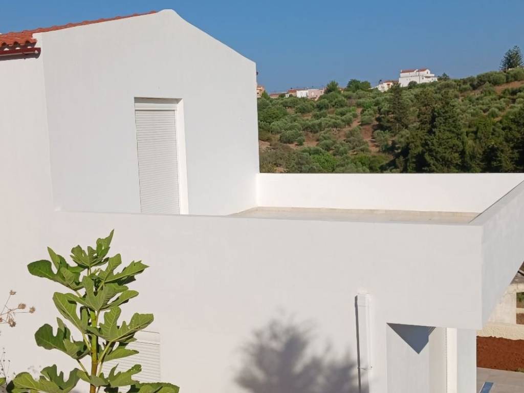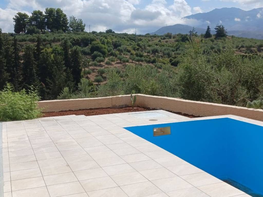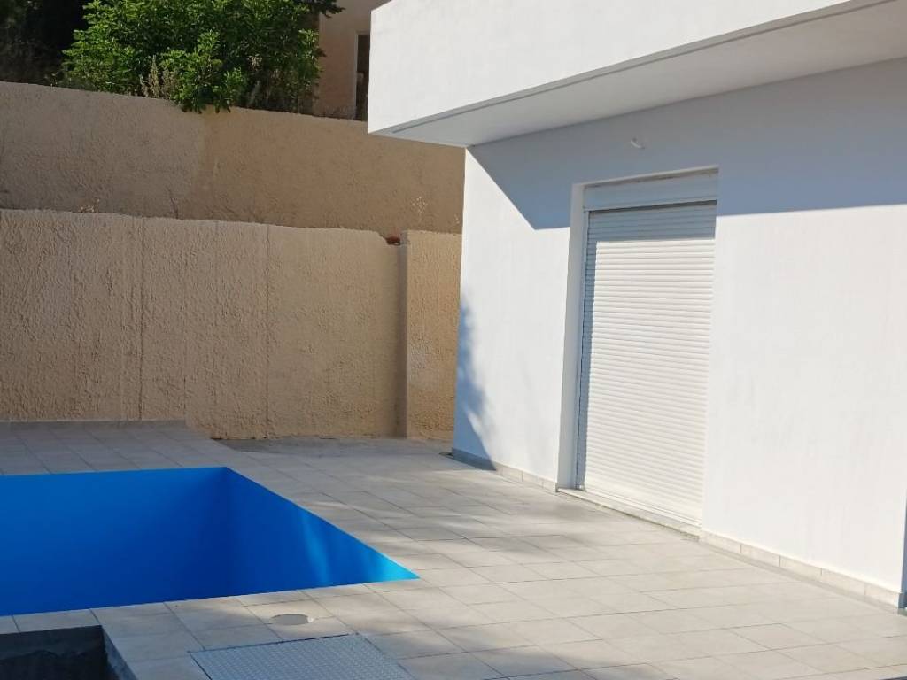 this is a two storey concrete building . the layout of the house is like that of a traditional of the house of the area. the walls have been built with double bricks with space in between for all yerar round insulation. it has been built on a plot of land of 344 square metres. there are large verandas on the ground floor as well as on the top floor with a beautiful view of nature and the mountains. there is a small pool on the ground floor outside the living room. the electricity have been installed. there are tils on all the floors as weii as the bathrooms. all the window and doors are of white aluminium and screens. inside a new modern kitchen has been installed.there are a few things that need finishing . for example the equipment of the pool to start function ning. the solar panel for hot water .