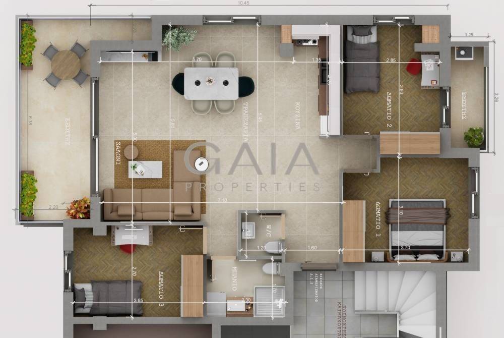 Apartment for sale in Agios Ioannis, Kalamaria of Thessaloniki - Suburbs for 350.000€ (Listing No 1506). Another property brought to you by GAIA PROPERTIES. Located in the administrative area of Kalamaria, region of Thessaloniki - Suburbs, this luxurious property is now available for sale. This apartment is built on the first floor and sized about 114sqm. Constructed in year 2025, the building was finished on the highest standards of the Market which can be seen through the available photos accompanying the listing.