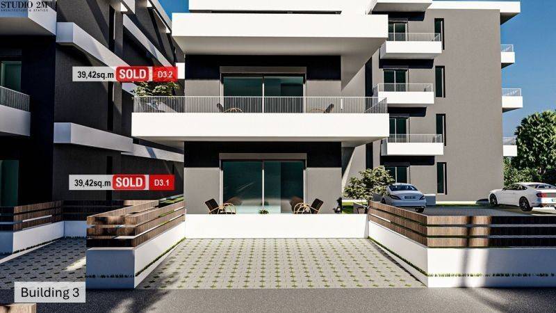 • 64 Διαμερίσματα από 39,42τ.μ. έως 57,47τ.μ, που αποτελούνται από σαλοκουζίνα, 1 υπνοδωμάτιο, 1 μπάνιο,